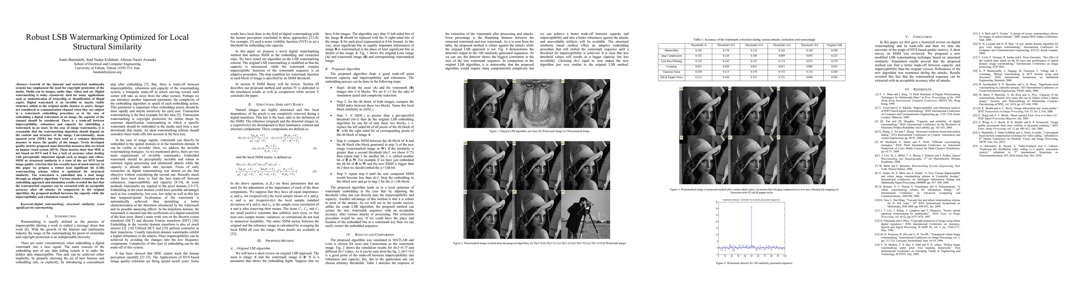 This paper proposes a robust least significant bit (LSB) watermarking scheme optimized for structural similarity, which can extract watermarked images with acceptable accuracy even after attacks.