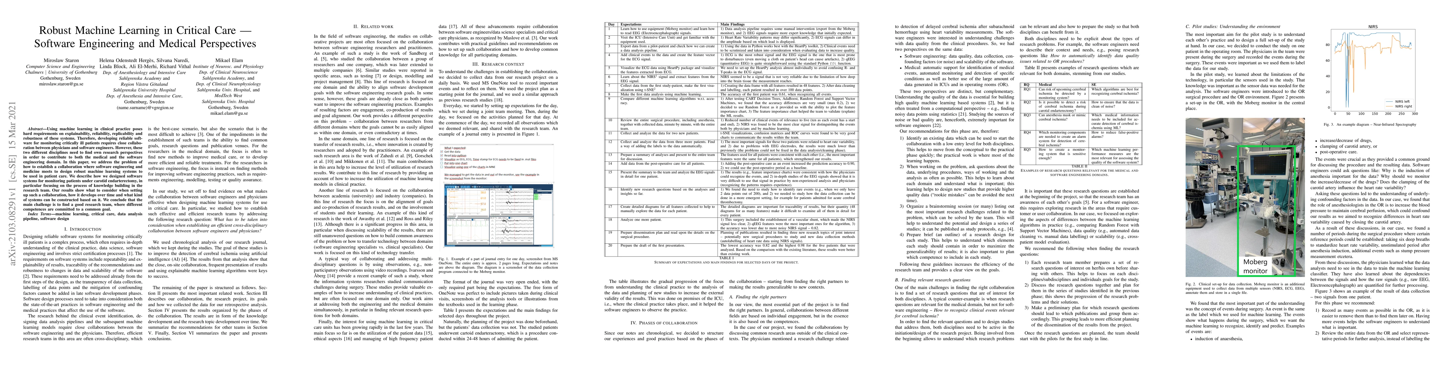 This paper explores the collaboration between software engineers and physicians to develop robust machine learning systems for critical care, emphasizing the importance of explainability, reliability, and replicability. The study highlights the process of knowledge building within interdisciplinary teams and concludes that successful collaborations require diverse expertise committed to a shared objective.