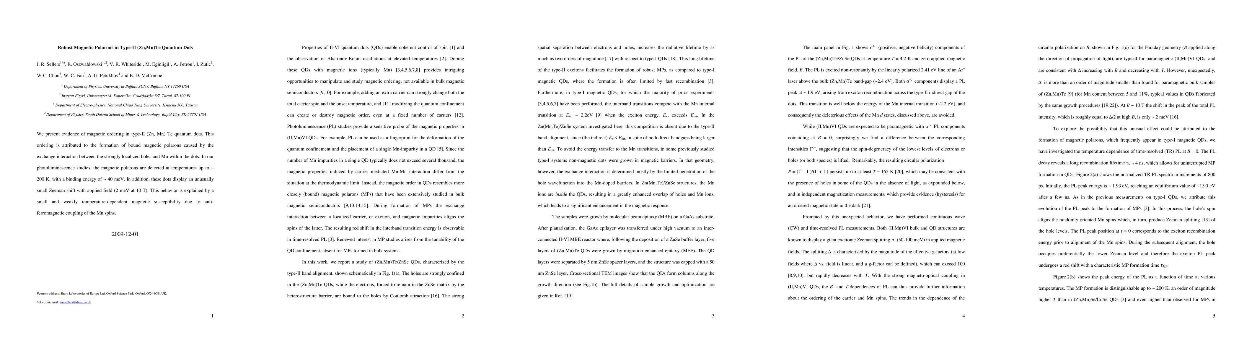 This study reveals magnetic ordering in type-II (Zn,Mn)Te quantum dots, attributed to the formation of robust magnetic polarons via exchange interaction between localized holes and Mn. These polarons exhibit stability up to 200 K and a small Zeeman shift, indicating anti-ferromagnetic coupling of Mn spins.