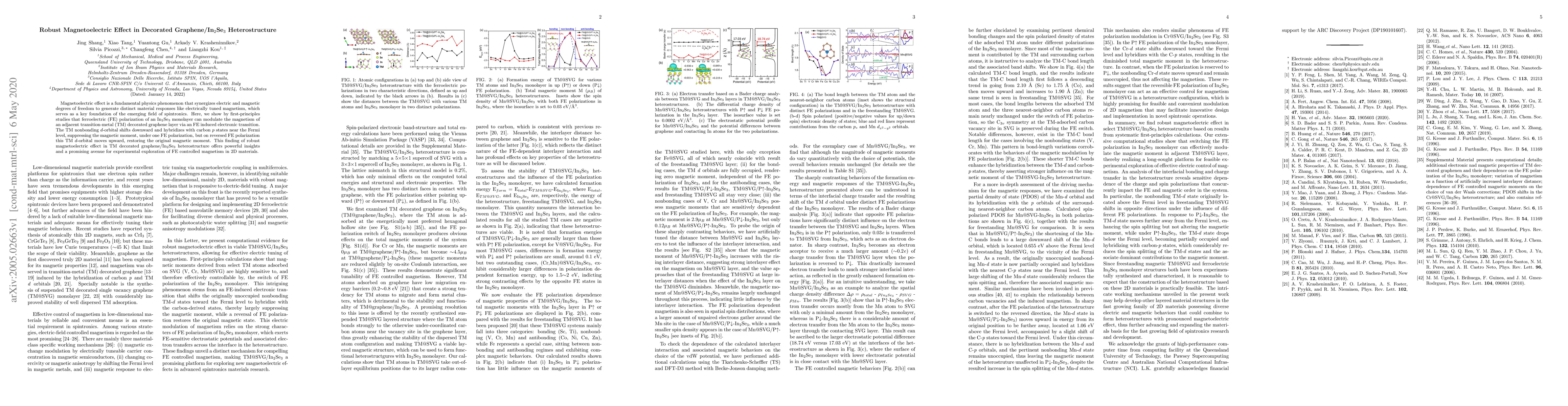 This paper demonstrates a robust magnetoelectric effect in a decorated graphene/In2Se3 heterostructure, where ferroelectric polarization of In2Se3 modulates the magnetism of graphene via electronic transitions. The study reveals that the transition-metal d-orbitals hybridize with carbon states, altering the magnetic moment based on the ferroelectric polarization direction.