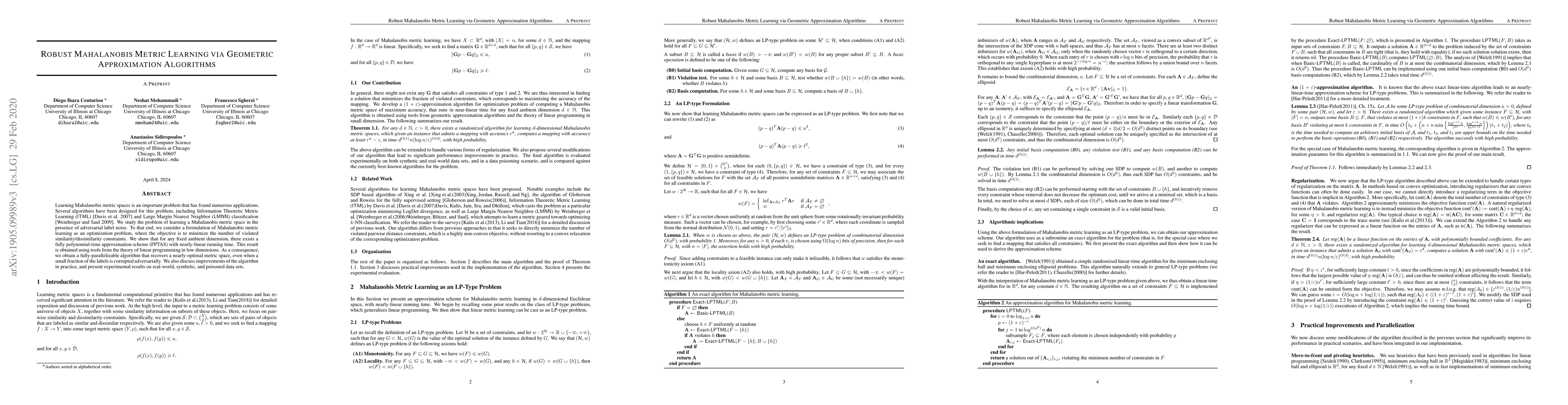 This paper proposes a robust algorithm for learning Mahalanobis metric spaces under adversarial label noise, achieving a fully polynomial-time approximation scheme (FPTAS) with nearly-linear running time. The method is fully-parallelizable and demonstrates effectiveness even with corrupted labels, supported by experimental results on various datasets.