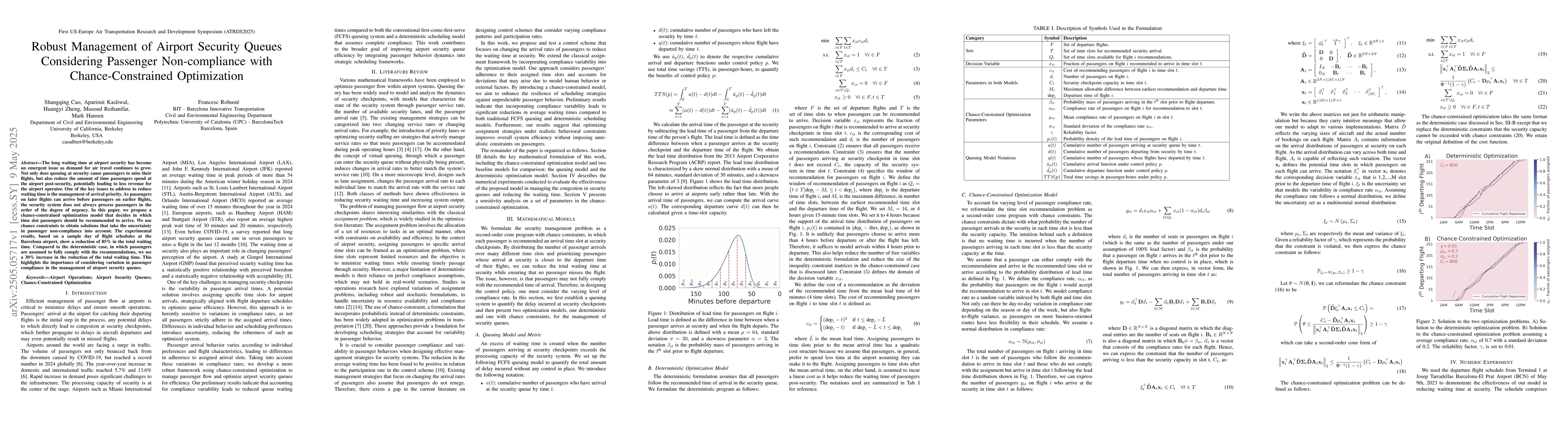 The paper proposes a chance-constrained optimization model to decide the time slot for passenger arrival recommendations, considering passenger non-compliance uncertainty.