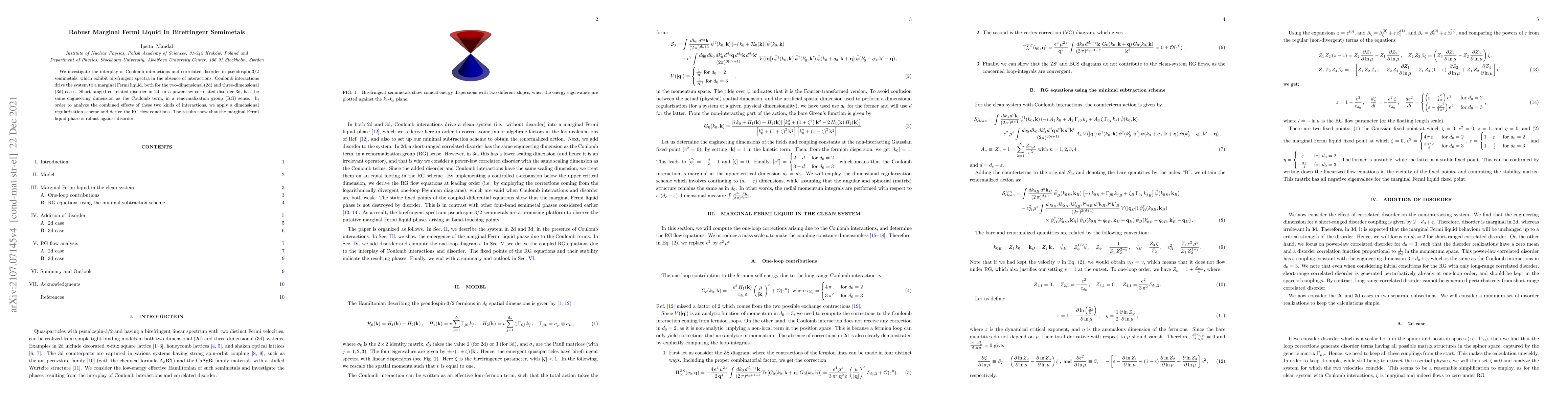 We investigate the interplay of Coulomb interactions and correlated disorder in pseudospin-3/2 semimetals, which exhibit birefringent spectra in the absence of interactions. Coulomb interactions drive the system to a marginal Fermi liquid, both for the two-dimensional (2d) and three-dimensional (3d) cases. Short-ranged correlated disorder in 2d, or a power-law correlated disorder 3d, has the same engineering dimension as the Coulomb term, in a renormalization group (RG) sense. In order to analyze the combined effects of these two kinds of interactions, we apply a dimensional regularization scheme and derive the RG flow equations. The results show that the marginal Fermi liquid phase is robust against disorder.