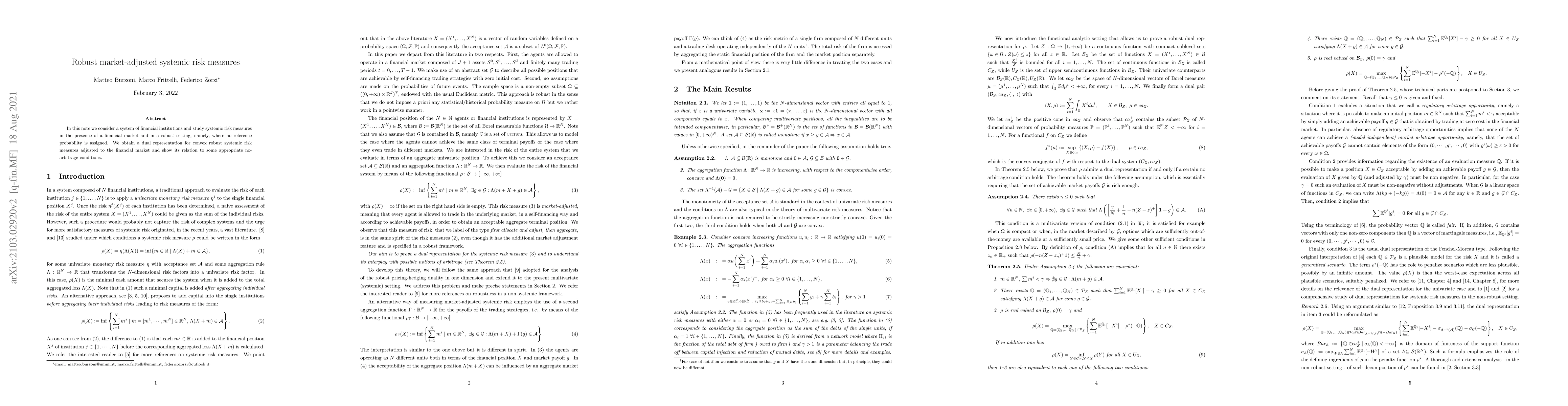 This paper develops robust systemic risk measures for financial institutions within a market context, without relying on a specific reference probability. It presents a dual representation for these measures and links them to no-arbitrage conditions.