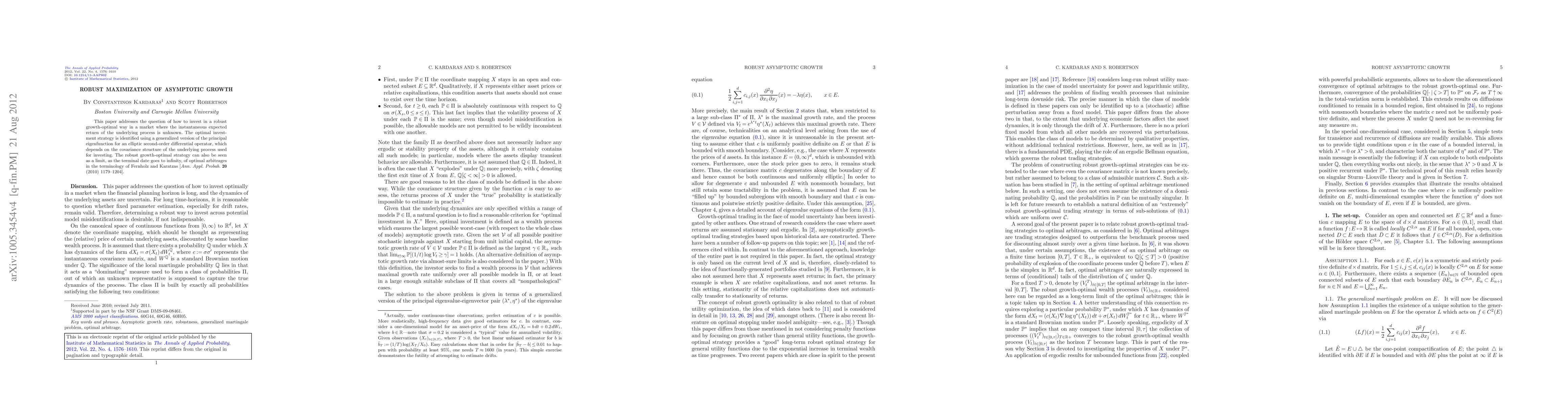 This paper develops a strategy for investing in a market with unknown expected returns, using a method that considers the covariance structure of the underlying process. It identifies a robust growth-optimal approach as a limit of optimal arbitrage strategies.
