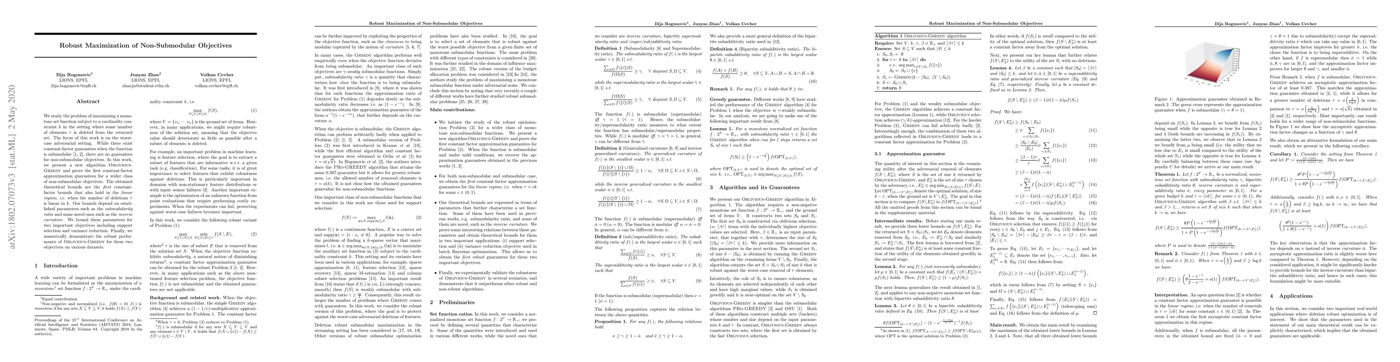 This paper presents Oblivious-Greedy algorithm for maximizing non-submodular objectives with cardinality constraints, achieving constant-factor approximation guarantees in the worst-case adversarial setting.
