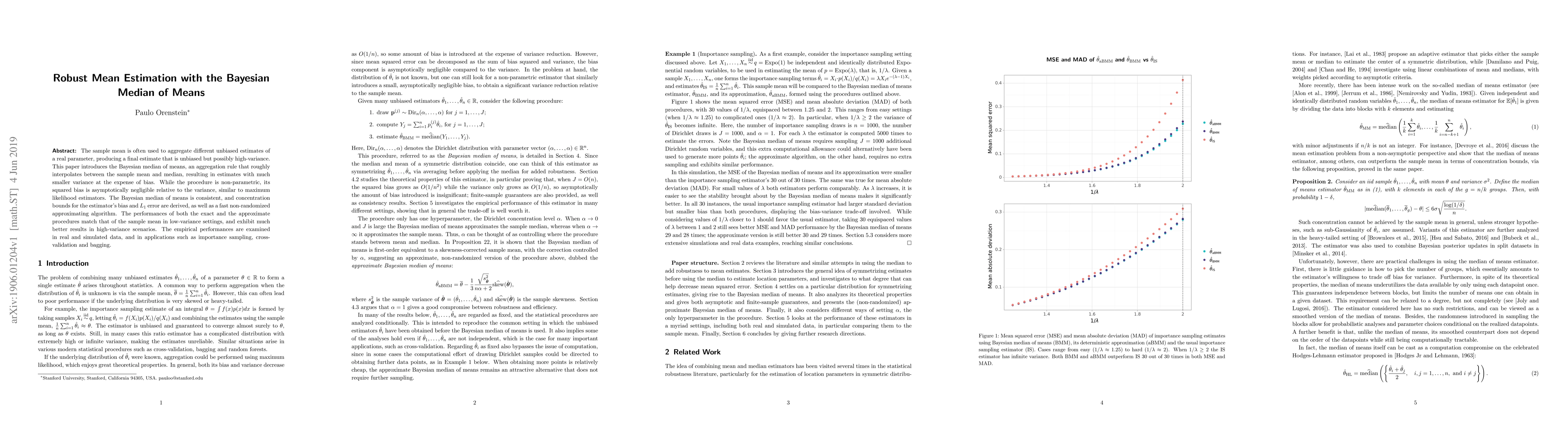 This paper proposes the Bayesian median of means as an improved aggregation method for unbiased estimates, offering lower variance than the sample mean while maintaining consistent performance. The method's bias is asymptotically negligible, and it performs better in high-variance settings compared to the sample mean.