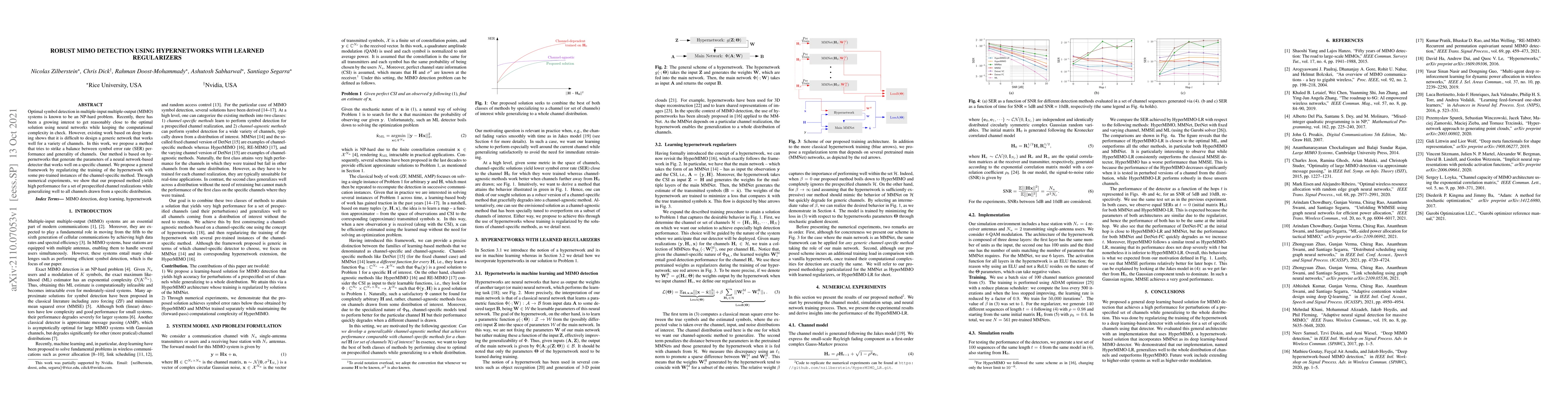 Optimal symbol detection in multiple-input multiple-output (MIMO) systems is known to be an NP-hard problem. Recently, there has been a growing interest to get reasonably close to the optimal solution using neural networks while keeping the computational complexity in check. However, existing work based on deep learning shows that it is difficult to design a generic network that works well for a variety of channels. In this work, we propose a method that tries to strike a balance between symbol error rate (SER) performance and generality of channels. Our method is based on hypernetworks that generate the parameters of a neural network-based detector that works well on a specific channel. We propose a general framework by regularizing the training of the hypernetwork with some pre-trained instances of the channel-specific method. Through numerical experiments, we show that our proposed method yields high performance for a set of prespecified channel realizations while generalizing well to all channels drawn from a specific distribution.