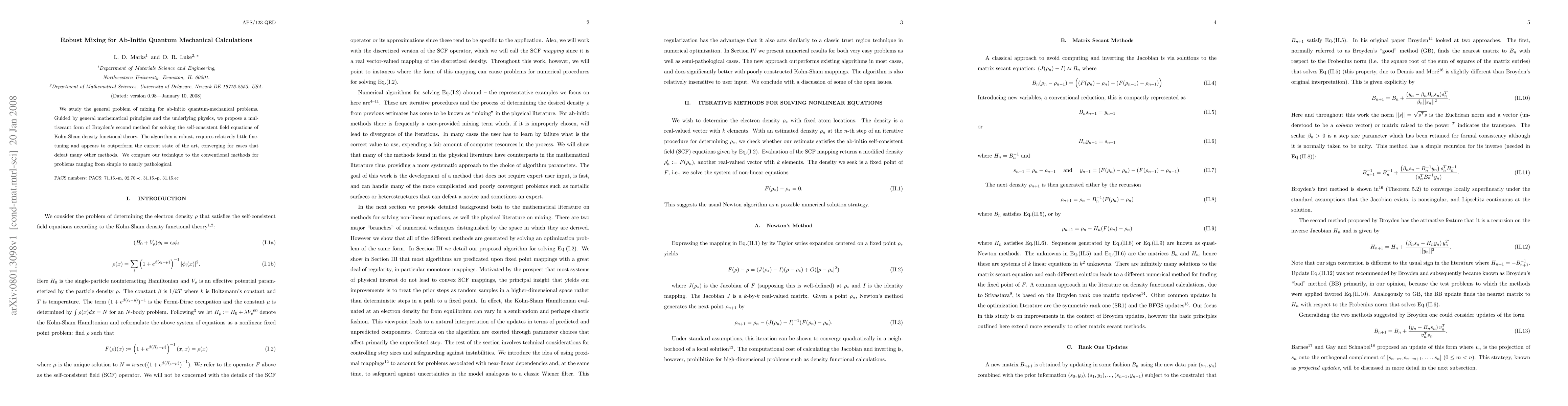 We study the general problem of mixing for ab-initio quantum-mechanical problems. Guided by general mathematical principles and the underlying physics, we propose a multisecant form of Broydens second method for solving the self-consistent field equations of Kohn-Sham density functional theory. The algorithm is robust, requires relatively little finetuning and appears to outperform the current state of the art, converging for cases that defeat many other methods. We compare our technique to the conventional methods for problems ranging from simple to nearly pathological.