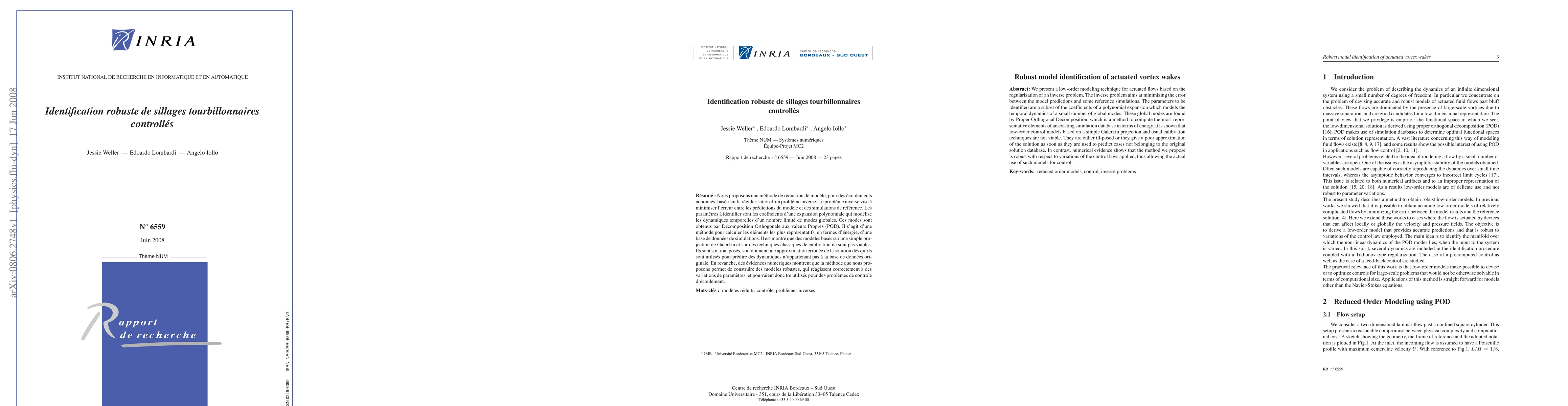 We present a low-order modeling technique for actuated flows based on the regularization of an inverse problem. The inverse problem aims at minimizing the error between the model predictions and some reference simulations. The parameters to be identified are a subset of the coefficients of a polynomial expansion which models the temporal dynamics of a small number of global modes. These global modes are found by Proper Orthogonal Decomposition, which is a method to compute the most representative elements of an existing simulation database in terms of energy. It is shown that low-order control models based on a simple Galerkin projection and usual calibration techniques are not viable. They are either ill-posed or they give a poor approximation of the solution as soon as they are used to predict cases not belonging to the original solution database. In contrast, numerical evidence shows that the method we propose is robust with respect to variations of the control laws applied, thus allowing the actual use of such models for control.