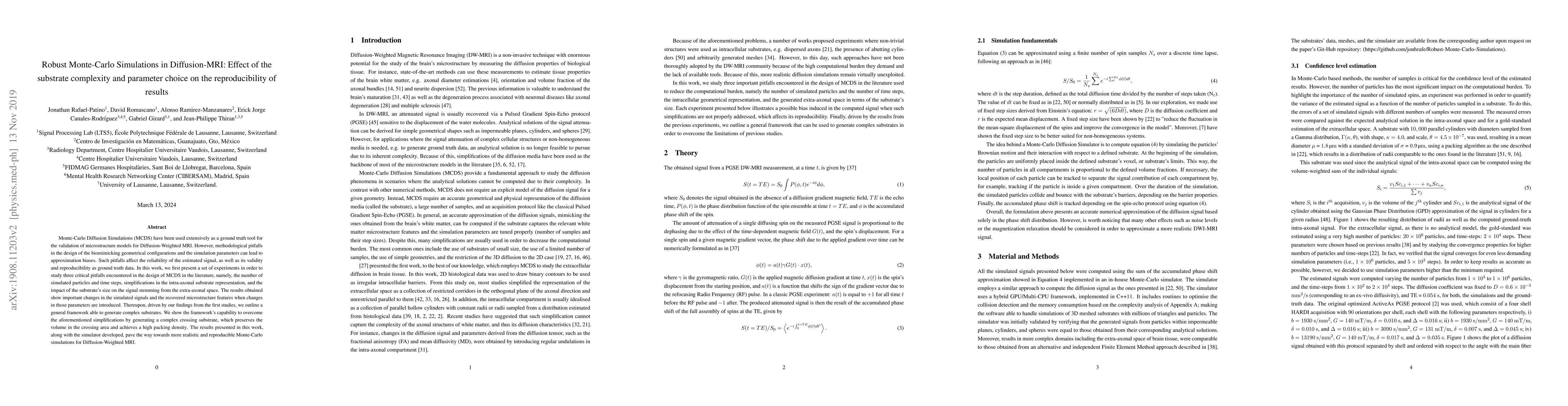 This paper investigates methodological issues in Monte-Carlo Diffusion Simulations (MCDS) for Diffusion-Weighted MRI, highlighting the impact of substrate complexity, particle numbers, and simulation parameters on reproducibility. It proposes a new framework for generating complex substrates that improves the accuracy and reliability of simulation results.