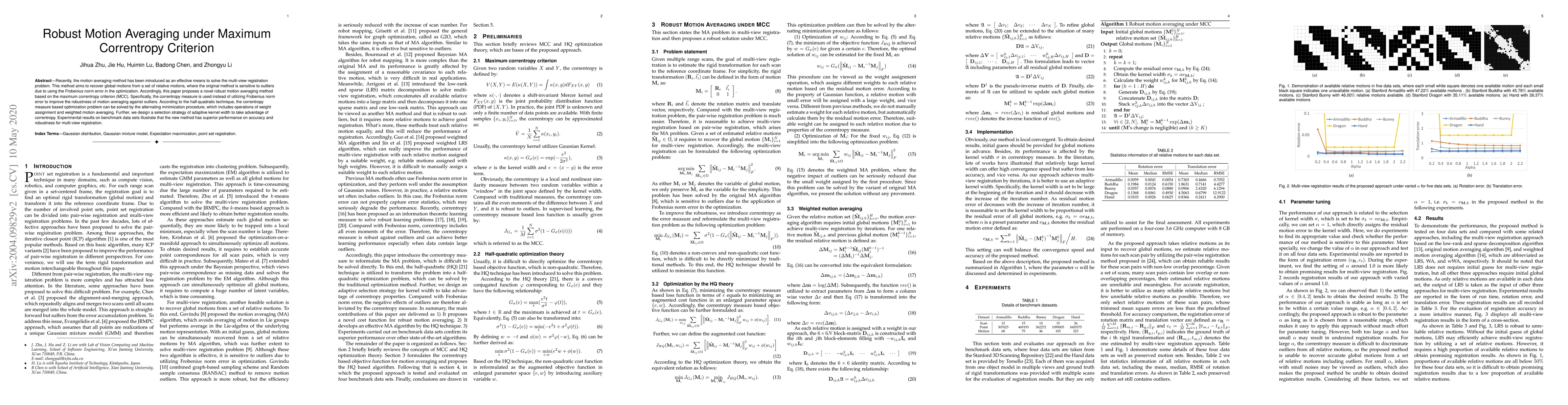 A new motion averaging method using the maximum correntropy criterion improves robustness to outliers in multi-view registration. The method outperforms traditional methods on accuracy and robustness.