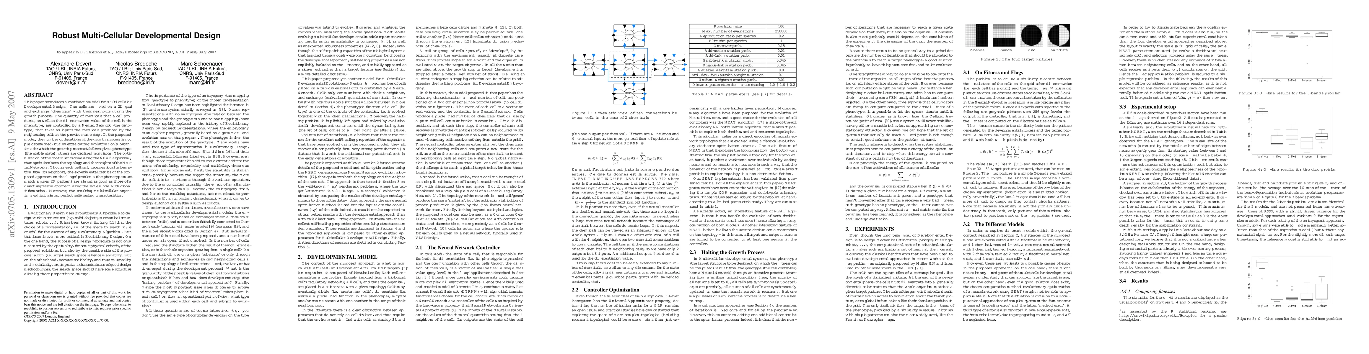 This paper introduces a continuous model for Multi-cellular Developmental Design. The cells are fixed on a 2D grid and exchange "chemicals" with their neighbors during the growth process. The quantity of chemicals that a cell produces, as well as the differentiation value of the cell in the phenotype, are controlled by a Neural Network (the genotype) that takes as inputs the chemicals produced by the neighboring cells at the previous time step. In the proposed model, the number of iterations of the growth process is not pre-determined, but emerges during evolution: only organisms for which the growth process stabilizes give a phenotype (the stable state), others are declared nonviable. The optimization of the controller is done using the NEAT algorithm, that optimizes both the topology and the weights of the Neural Networks. Though each cell only receives local information from its neighbors, the experimental results of the proposed approach on the 'flags' problems (the phenotype must match a given 2D pattern) are almost as good as those of a direct regression approach using the same model with global information. Moreover, the resulting multi-cellular organisms exhibit almost perfect self-healing characteristics.