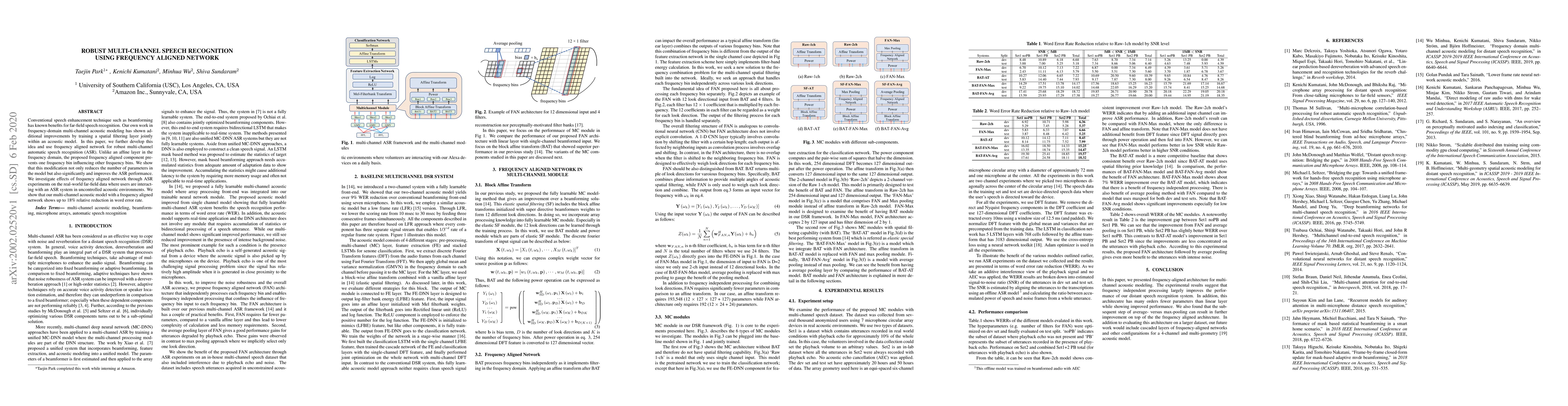 Researchers developed a frequency aligned network for robust multi-channel speech recognition, achieving up to 18% relative reduction in word error rate on far-field data.