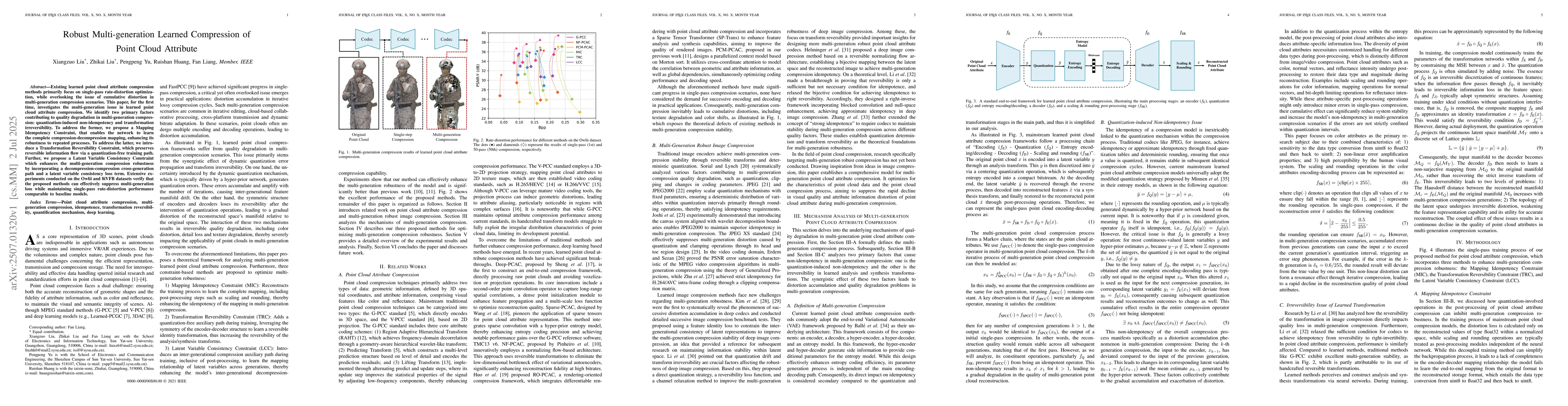 Existing learned point cloud attribute compression methods primarily focus on single-pass rate-distortion optimization, while overlooking the issue of cumulative distortion in multi-generation compression scenarios. This paper, for the first time, investigates the multi-generation issue in learned point cloud attribute compression. We identify two primary factors contributing to quality degradation in multi-generation compression: quantization-induced non-idempotency and transformation irreversibility. To address the former, we propose a Mapping Idempotency Constraint, that enables the network to learn the complete compression-decompression mapping, enhancing its robustness to repeated processes. To address the latter, we introduce a Transformation Reversibility Constraint, which preserves reversible information flow via a quantization-free training path. Further, we propose a Latent Variable Consistency Constraint which enhances the multi-generation compression robustness by incorporating a decompression-compression cross-generation path and a latent variable consistency loss term. Extensive experiments conducted on the Owlii and 8iVFB datasets verify that the proposed methods can effectively suppress multi-generation loss while maintaining single-pass rate-distortion performance comparable to baseline models.