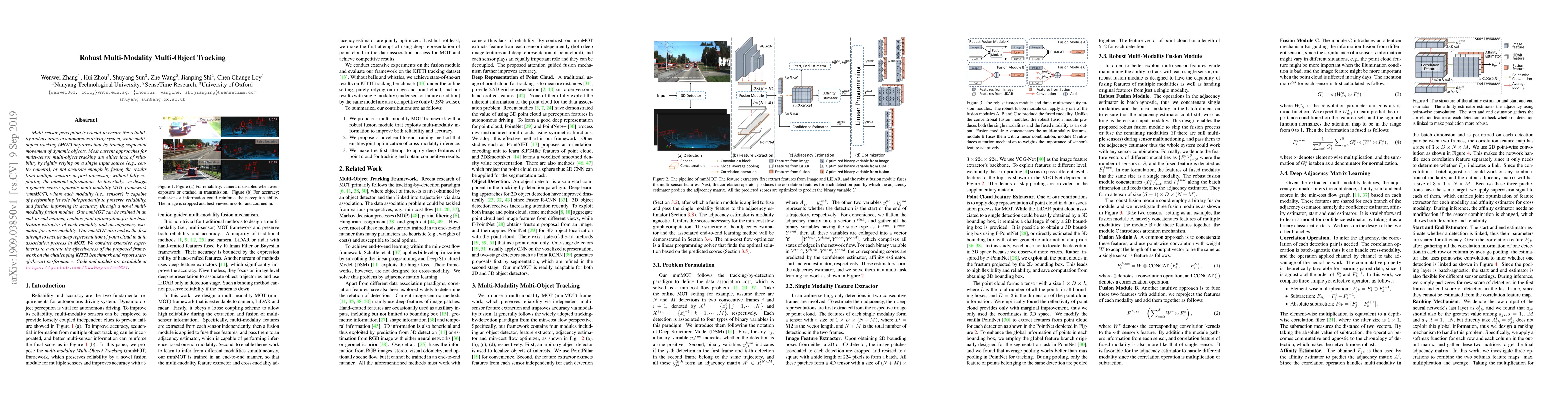 This paper proposes a robust sensor-agnostic multi-modality multi-object tracking (mmMOT) framework that enhances reliability and accuracy by independently utilizing multiple sensor modalities and employing a novel fusion module. The framework achieves state-of-the-art performance on the KITTI benchmark.