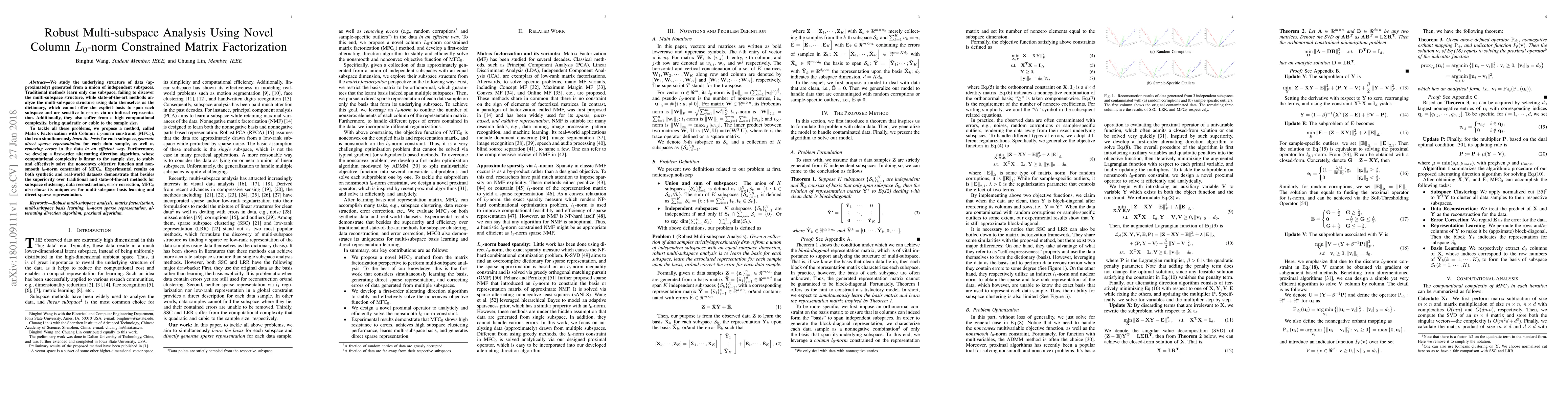A new method called Matrix Factorization with Column L0-norm constraint (MFC0) is proposed to learn the basis for each subspace in multi-subspace data, generating a direct sparse representation and correcting errors in an efficient way.