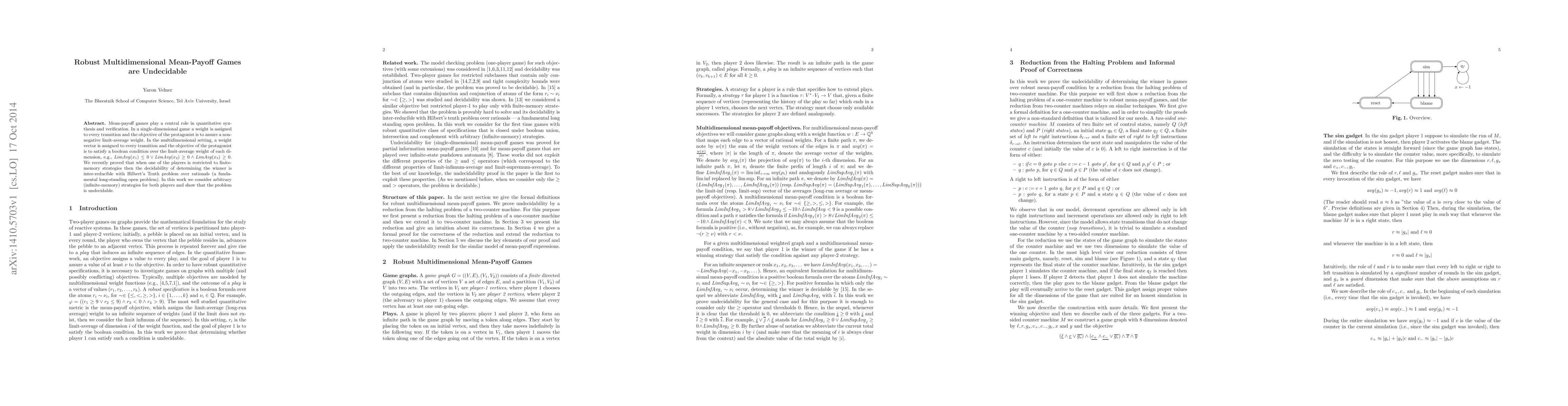 Mean-payoff games play a central role in quantitative synthesis and verification. In a single-dimensional game a weight is assigned to every transition and the objective of the protagonist is to assure a non-negative limit-average weight. In the multidimensional setting, a weight vector is assigned to every transition and the objective of the protagonist is to satisfy a boolean condition over the limit-average weight of each dimension, e.g., $\LimAvg(x_1) \leq 0 \vee \LimAvg(x_2)\geq 0 \wedge \LimAvg(x_3) \geq 0$. We recently proved that when one of the players is restricted to finite-memory strategies then the decidability of determining the winner is inter-reducible with Hilbert's Tenth problem over rationals (a fundamental long-standing open problem). In this work we allow arbitrary (infinite-memory) strategies for both players and we show that the problem is undecidable.