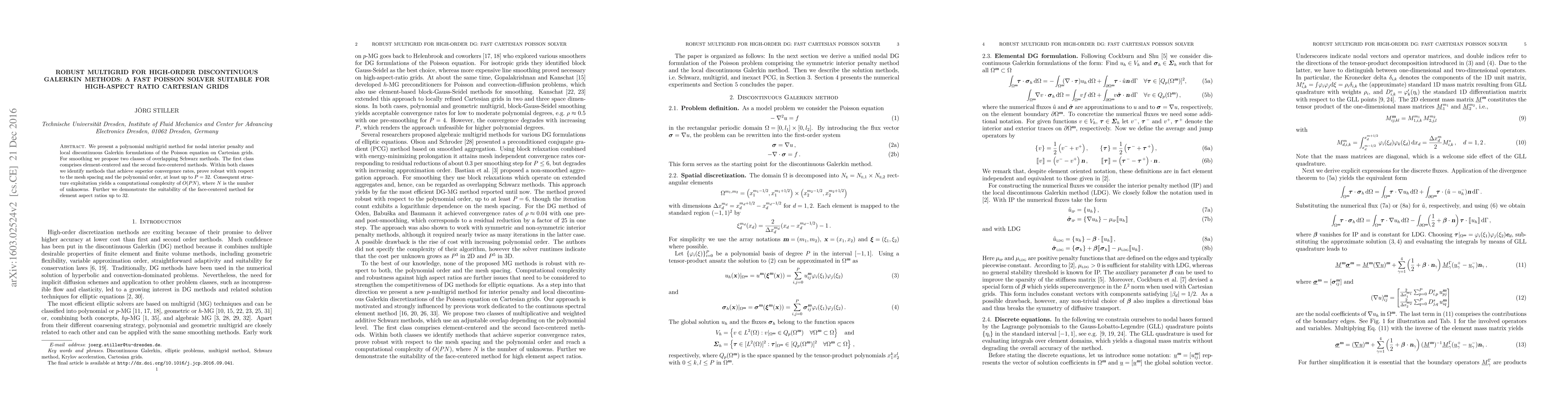 We present a polynomial multigrid method for nodal interior penalty and local discontinuous Galerkin formulations of the Poisson equation on Cartesian grids. For smoothing we propose two classes of overlapping Schwarz methods. The first class comprises element-centered and the second face-centered methods. Within both classes we identify methods that achieve superior convergence rates, prove robust with respect to the mesh spacing and the polynomial order, at least up to ${P=32}$. Consequent structure exploitation yields a computational complexity of $O(PN)$, where $N$ is the number of unknowns. Further we demonstrate the suitability of the face-centered method for element aspect ratios up to 32.