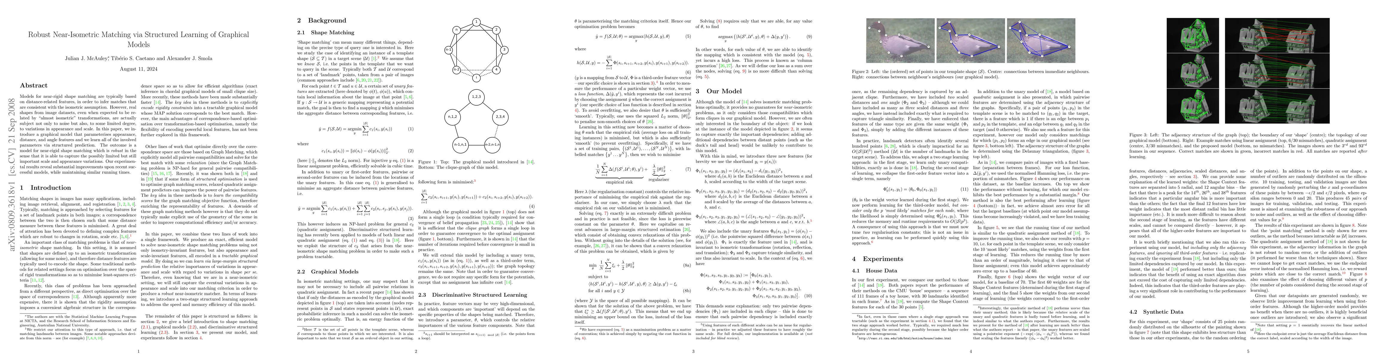 This paper proposes a graphical model for robust near-rigid shape matching that incorporates appearance, distance, and angle features, learning parameters via structured prediction to handle scale and appearance variations. Experimental results show significant improvements over recent models while maintaining comparable efficiency.