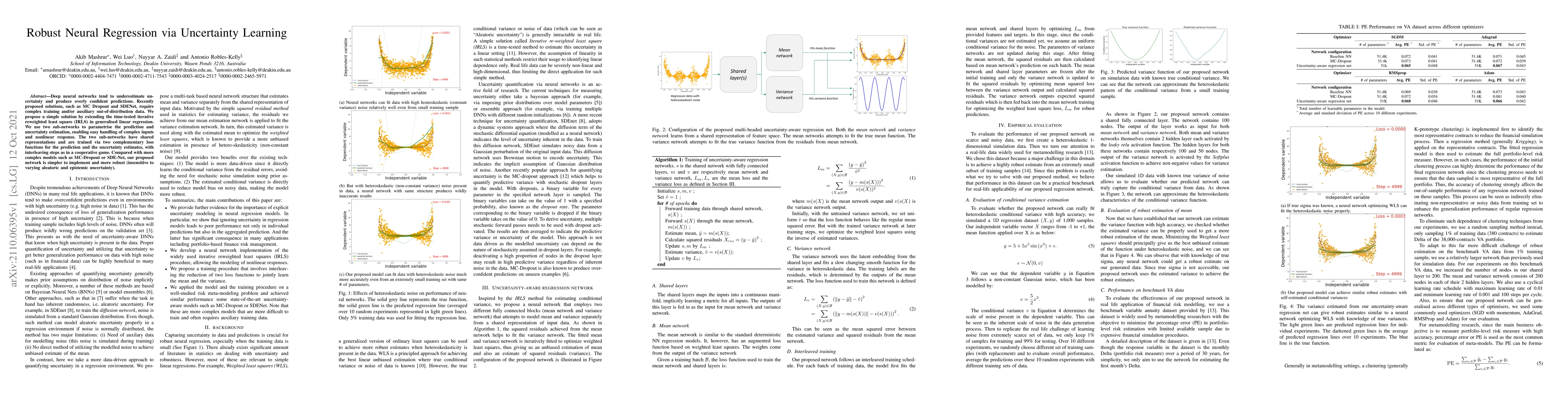 This paper proposes a simple neural regression method that uses an iterative reweighted least square approach to improve uncertainty estimation. It employs two sub-networks to handle predictions and uncertainty estimation, trained with complementary loss functions, resulting in a model that is easier to implement and more robust compared to complex alternatives like MC Dropout or SDENet.