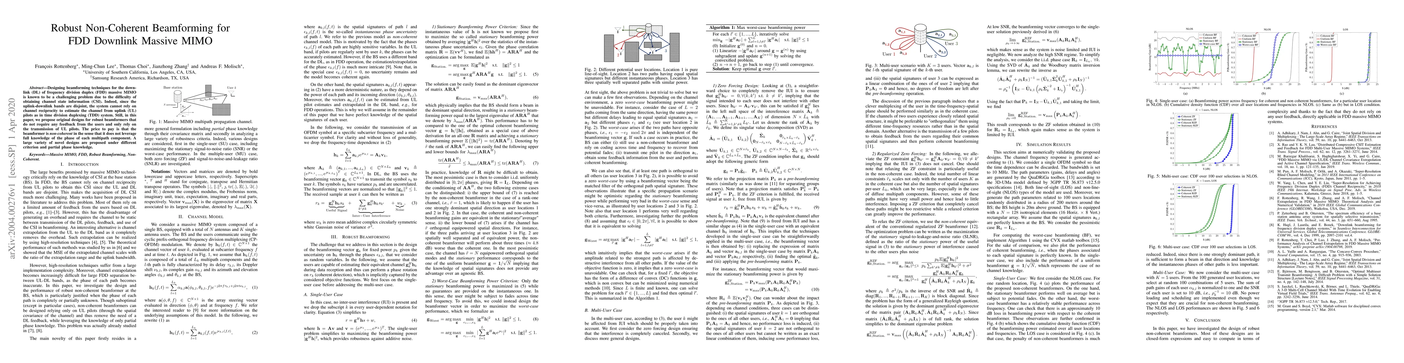 Designing beamforming techniques for the downlink (DL) of frequency division duplex (FDD) massive MIMO is known to be a challenging problem due to the difficulty of obtaining channel state information (CSI). Indeed, since the uplink-downlink bands are disjoint, the system cannot rely on channel reciprocity to estimate the channel from uplink (UL) pilots as in time division duplexing (TDD) system. Still, in this paper, we propose original designs for robust beamformers that do not require any feedback from the users and only rely on the transmission of UL pilots. The price to pay is that the beamformer is non-coherent in the sense that it does not leverage full knowledge of the phase of each multipath component. A large variety of novel designs are proposed under different criterion and partial phase knowledge.