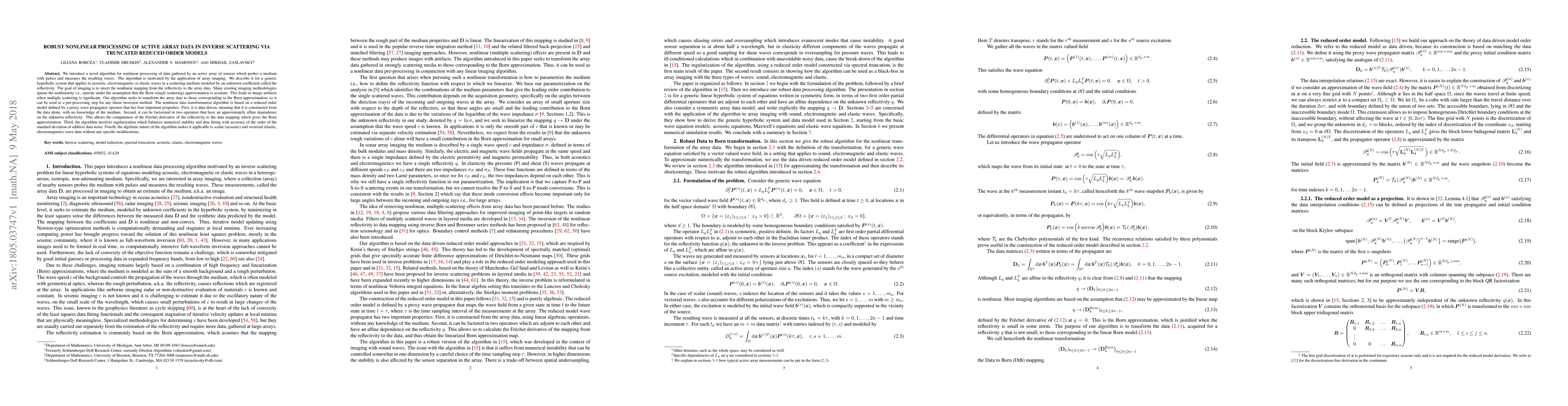 We introduce a novel algorithm for nonlinear processing of data gathered by an active array of sensors which probes a medium with pulses and measures the resulting waves. The algorithm is motivated by the application of array imaging. We describe it for a generic hyperbolic system that applies to acoustic, electromagnetic or elastic waves in a scattering medium modeled by an unknown coefficient called the reflectivity. The goal of imaging is to invert the nonlinear mapping from the reflectivity to the array data. Many existing imaging methodologies ignore the nonlinearity i.e., operate under the assumption that the Born (single scattering) approximation is accurate. This leads to image artifacts when multiple scattering is significant. Our algorithm seeks to transform the array data to those corresponding to the Born approximation, so it can be used as a pre-processing step for any linear inversion method. The nonlinear data transformation algorithm is based on a reduced order model defined by a proxy wave propagator operator that has four important properties. First, it is data driven, meaning that it is constructed from the data alone, with no knowledge of the medium. Second, it can be factorized in two operators that have an approximately affine dependence on the unknown reflectivity. This allows the computation of the Fr\'{e}chet derivative of the reflectivity to the data mapping which gives the Born approximation. Third, the algorithm involves regularization which balances numerical stability and data fitting with accuracy of the order of the standard deviation of additive data noise. Fourth, the algebraic nature of the algorithm makes it applicable to scalar (acoustic) and vectorial (elastic, electromagnetic) wave data without any specific modifications.