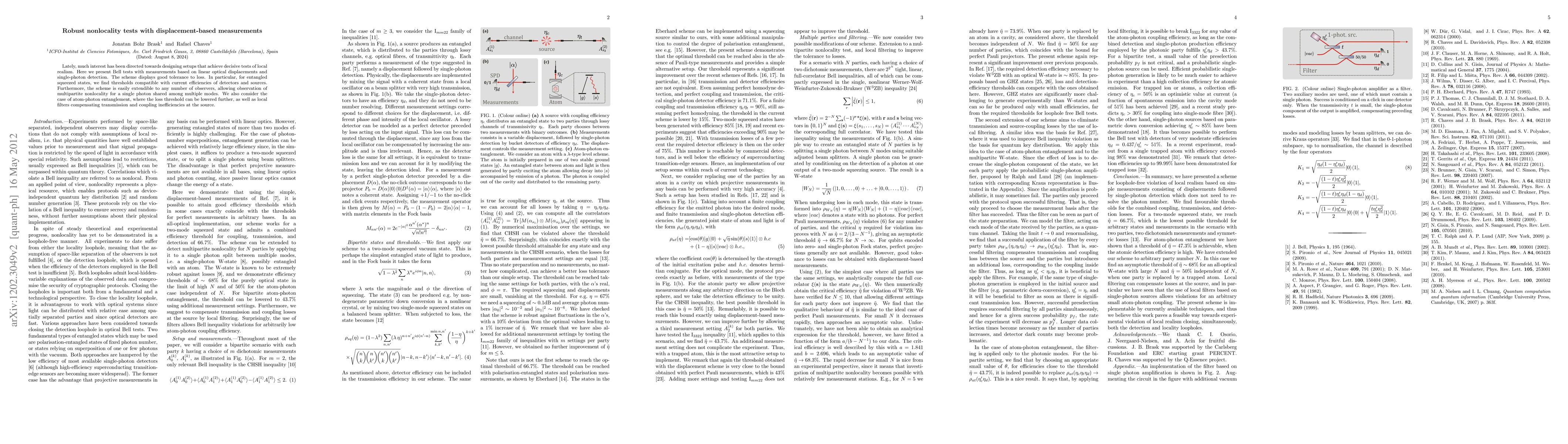 Lately, much interest has been directed towards designing setups that achieve decisive tests of local realism. Here we present Bell tests with measurements based on linear optical displacements and single-photon detection. The scheme displays good tolerance to loss. In particular, for entangled squeezed states, we find thresholds compatible with current efficiencies of detectors and sources. Furthermore, the scheme is easily extendible to any number of observers, allowing observation of multipartite nonlocality for a single photon shared among multiple modes. We also consider the case of atom-photon entanglement, where the loss threshold can be lowered further, as well as local filters compensating transmission and coupling inefficiencies at the source.