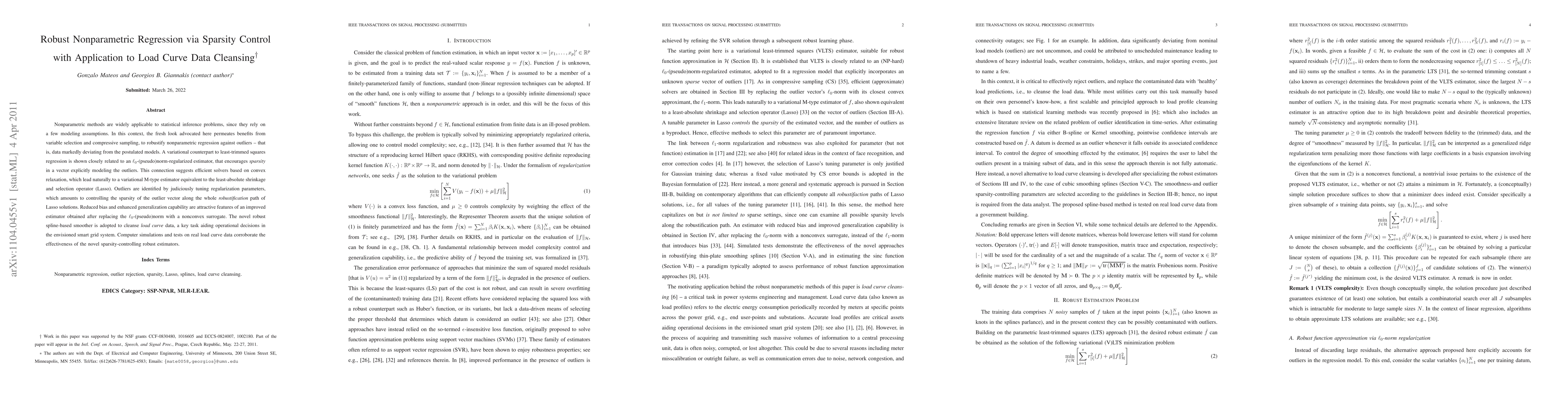 This paper proposes a robust nonparametric regression method using sparsity control to handle outliers in load curve data. It leverages variational techniques and L0-norm regularization to develop an efficient estimator with reduced bias and improved generalization capability, validated through simulations and real data tests.