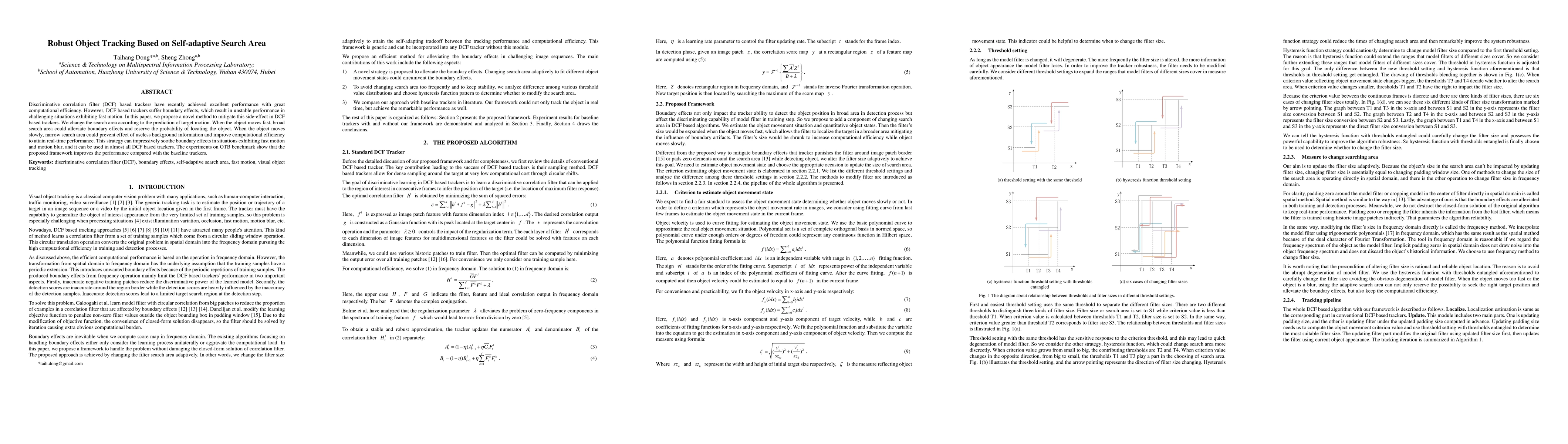 This paper proposes a self-adaptive search area strategy to mitigate boundary effects in discriminative correlation filter (DCF) based trackers, improving performance in fast motion scenarios. The method adjusts the search area dynamically based on target motion predictions, achieving better tracking stability and computational efficiency.