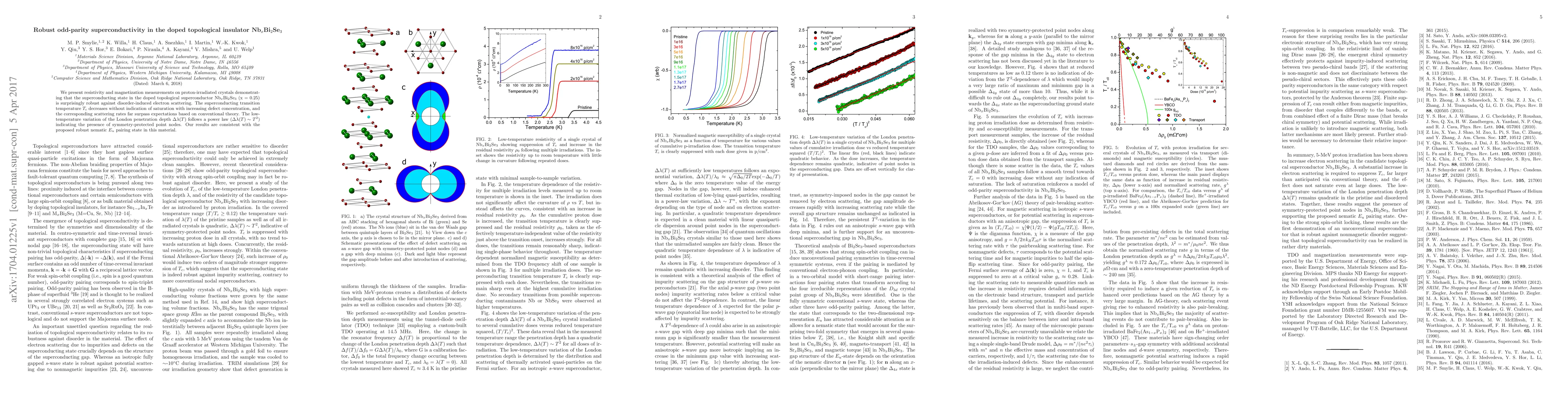 This study reveals that superconductivity in doped Nb$_x$Bi$_2$Se$_3$ remains robust against electron scattering from disorder, with $T_c$ decreasing without saturation and unusual London penetration depth behavior, suggesting the presence of robust odd-parity superconductivity with point nodes.