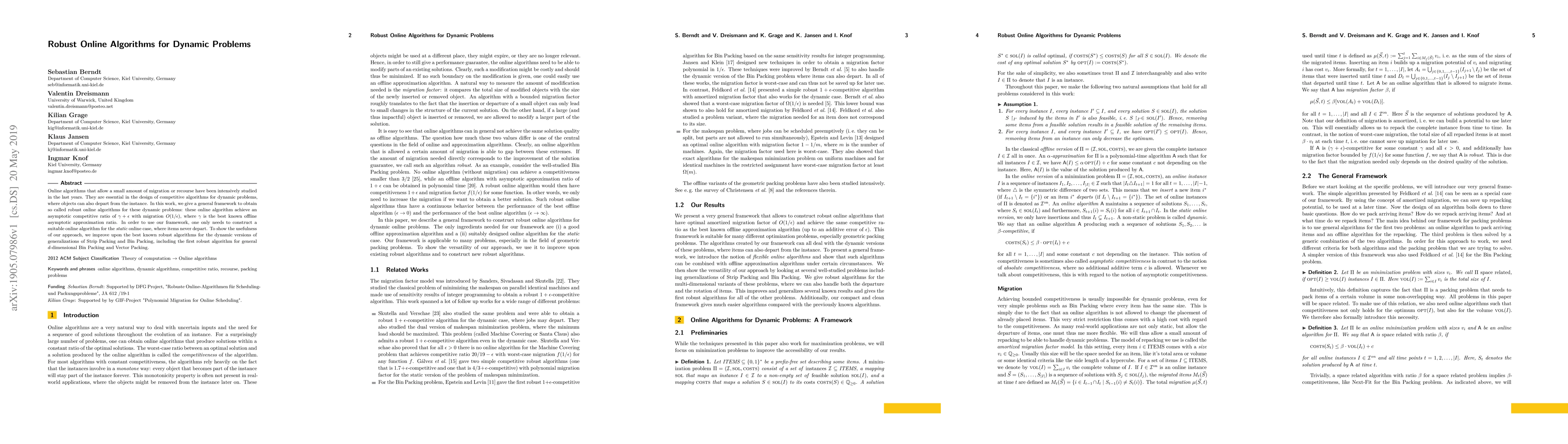 This paper presents a framework for developing robust online algorithms for dynamic problems, achieving an asymptotic competitive ratio of $\gamma+\epsilon$ with migration $O(1/\epsilon)$. The authors demonstrate its utility by improving existing robust algorithms for dynamic versions of Strip Packing and Bin Packing, including the first robust algorithm for general $d$-dimensional Bin Packing and Vector Packing.