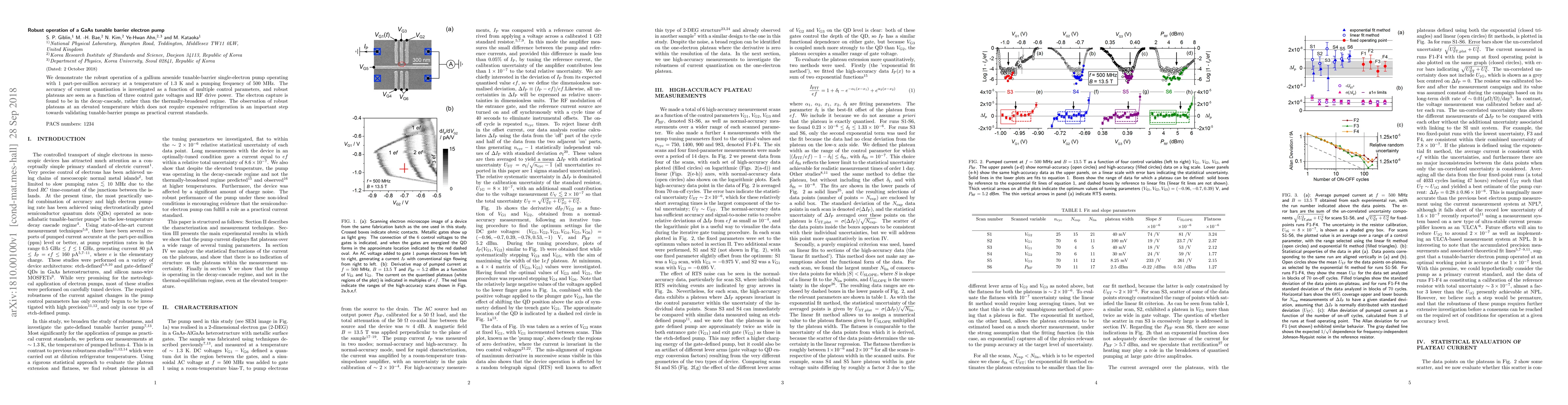 This paper demonstrates a gallium arsenide tunable-barrier single-electron pump operating with 1 ppm accuracy at a temperature of 1.3 K and 500 MHz. The study reveals robust plateaus in current quantization under various control parameters, indicating potential for practical current standards without expensive refrigeration.