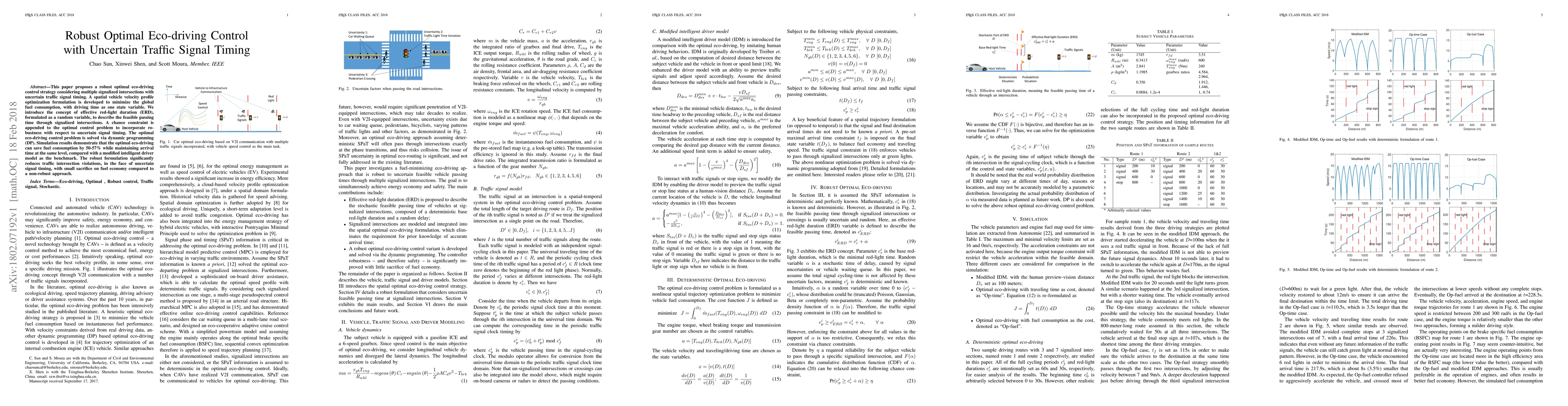 This paper proposes a robust eco-driving control strategy that minimizes fuel consumption while maintaining arrival time, saving 50-57% of fuel compared to a benchmark. It incorporates uncertainty in traffic signal timing with a chance constraint, reducing intersection violations while making a small sacrifice on fuel economy.