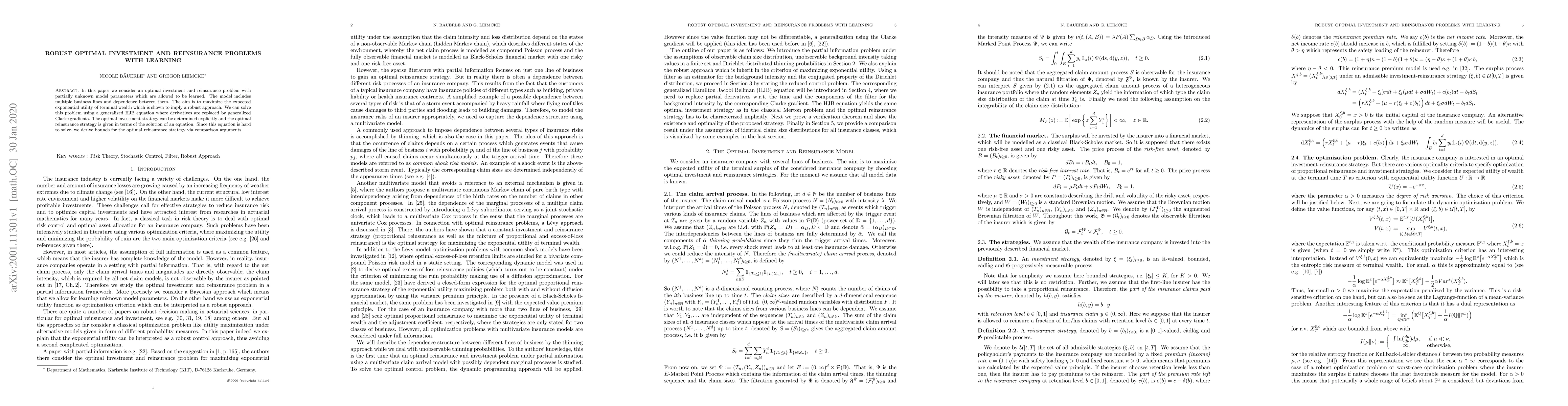 In this paper we consider an optimal investment and reinsurance problem with partially unknown model parameters which are allowed to be learned. The model includes multiple business lines and dependence between them. The aim is to maximize the expected exponential utility of terminal wealth which is shown to imply a robust approach. We can solve this problem using a generalized HJB equation where derivatives are replaced by generalized Clarke gradients. The optimal investment strategy can be determined explicitly and the optimal reinsurance strategy is given in terms of the solution of an equation. Since this equation is hard to solve, we derive bounds for the optimal reinsurance strategy via comparison arguments.