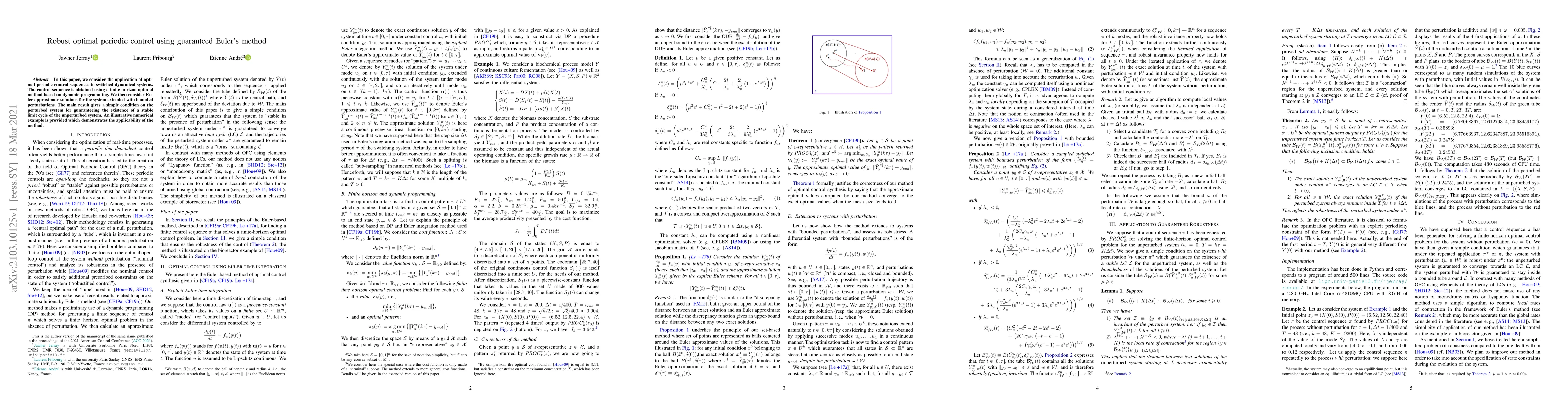 In this paper, we consider the application of optimal periodic control sequences to switched dynamical systems. The control sequence is obtained using a finite-horizon optimal method based on dynamic programming. We then consider Euler approximate solutions for the system extended with bounded perturbations. The main result gives a simple condition on the perturbed system for guaranteeing the existence of a stable limit cycle of the unperturbed system. An illustrative numerical example is provided which demonstrates the applicability of the method.