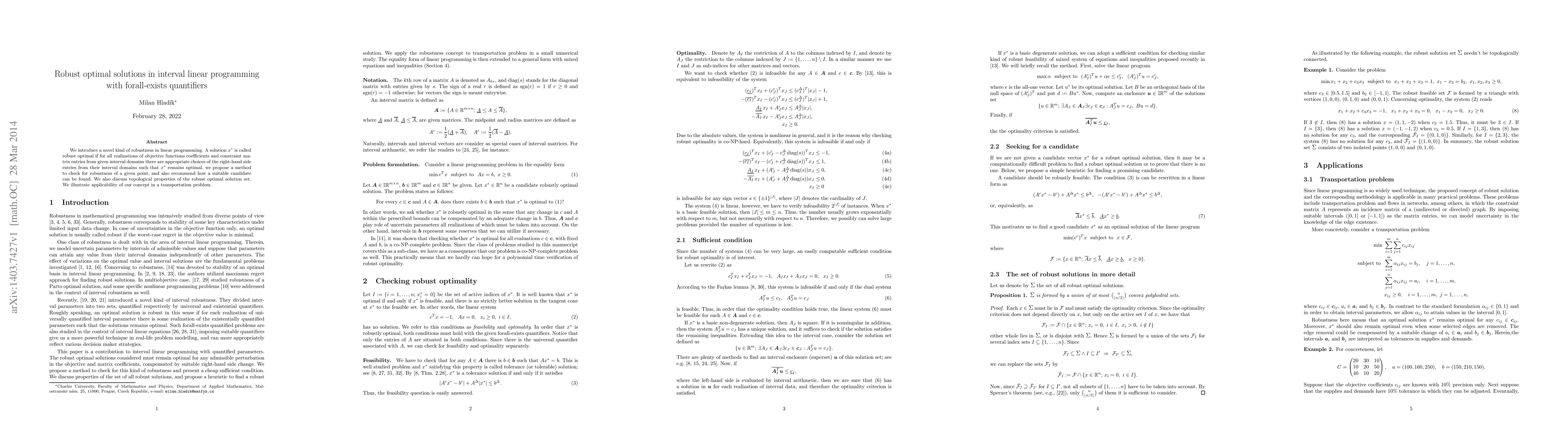 This paper introduces a novel robustness concept in interval linear programming where a solution remains optimal under all possible realizations of interval-bounded coefficients and constraints. It proposes a method to verify robustness and suggests a strategy for finding robust optimal solutions, along with discussing their topological properties and demonstrating its application in a transportation problem.