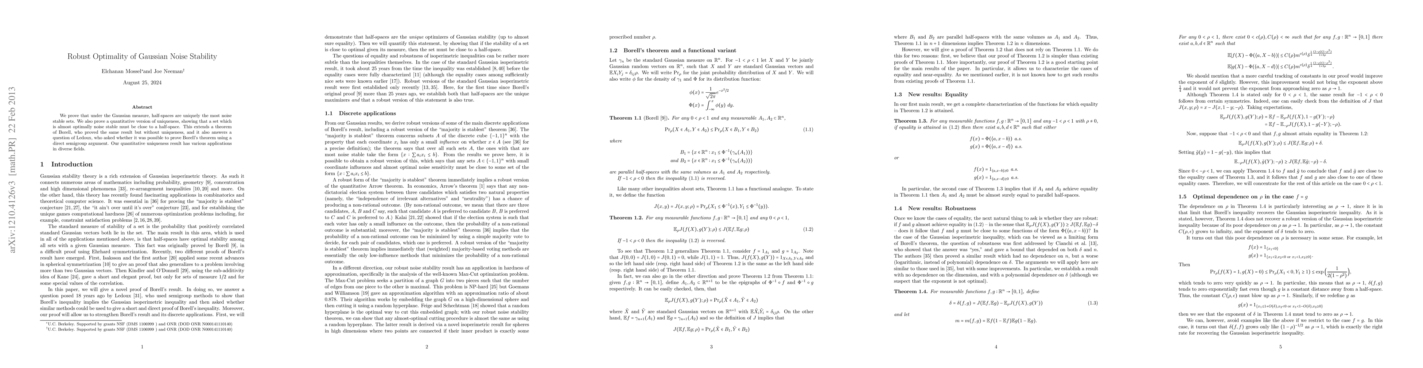 This paper proves that under the Gaussian measure, half-spaces are uniquely the most noise stable sets and provides a quantitative version of this uniqueness. It extends previous results by establishing a stronger form of stability and answering a question posed by Ledoux.