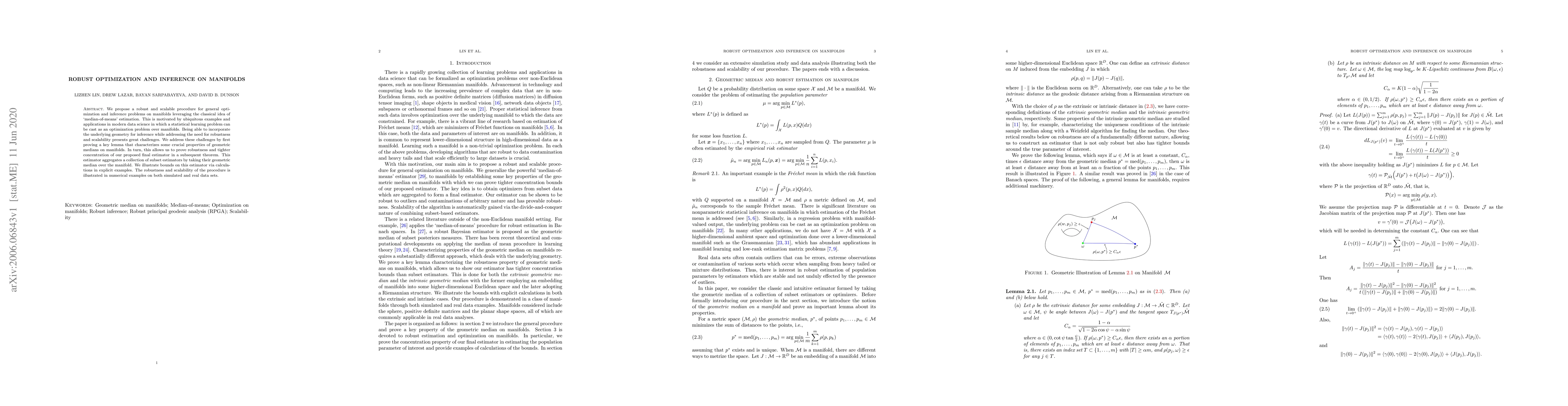 This paper introduces a robust and scalable method for optimization and inference on manifolds, using the median-of-means estimation technique. It proves properties of geometric medians on manifolds, leading to a robust estimator that aggregates subset estimators via geometric median. The method's effectiveness is demonstrated through examples and numerical experiments on simulated and real datasets.