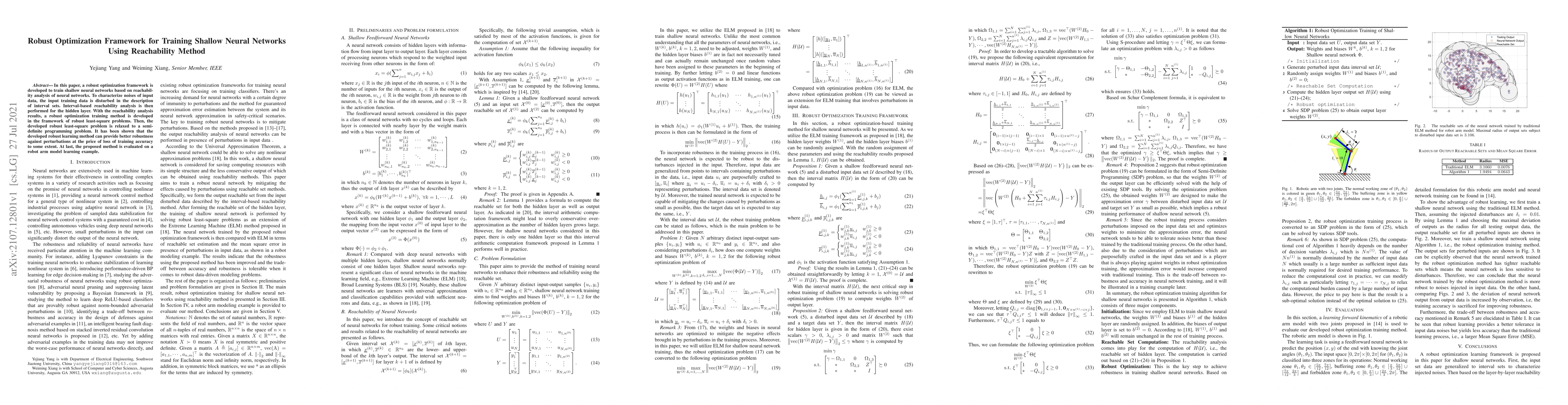 This paper presents a robust optimization framework for training shallow neural networks using reachability analysis, which enhances network robustness against input data perturbations by perturbing training data and solving a relaxed semidefinite programming problem. While this method improves robustness, it results in some loss of training accuracy.