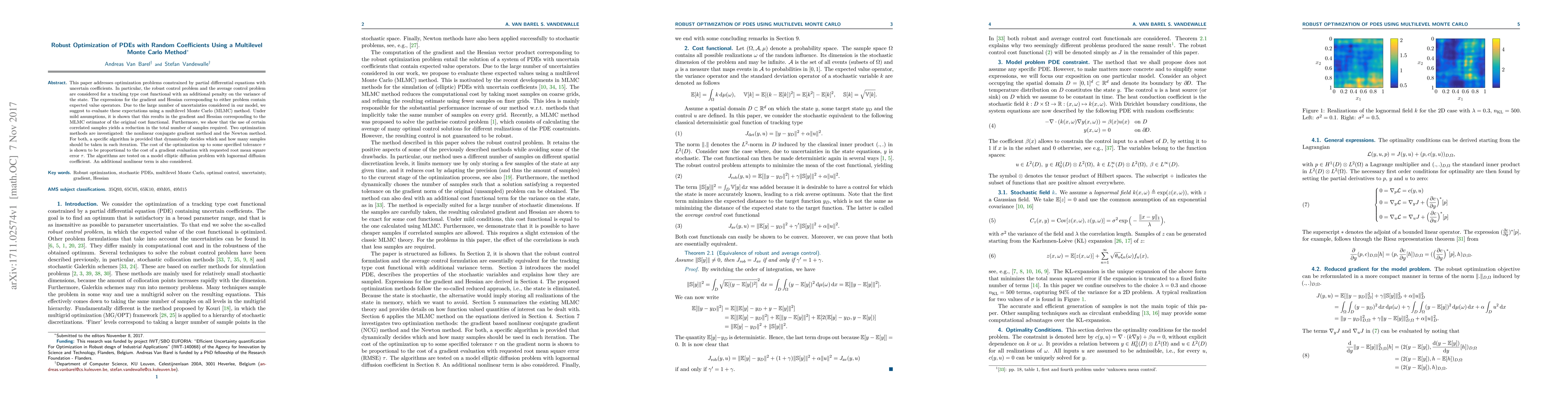 This research introduces a method to optimize partial differential equations with uncertain coefficients using a Multilevel Monte Carlo (MLMC) method. It demonstrates that this approach reduces the number of samples needed and presents specific algorithms for nonlinear conjugate gradient and Newton methods, showing that optimization cost scales with the cost of a gradient evaluation. The method is validated on a model elliptic diffusion problem.