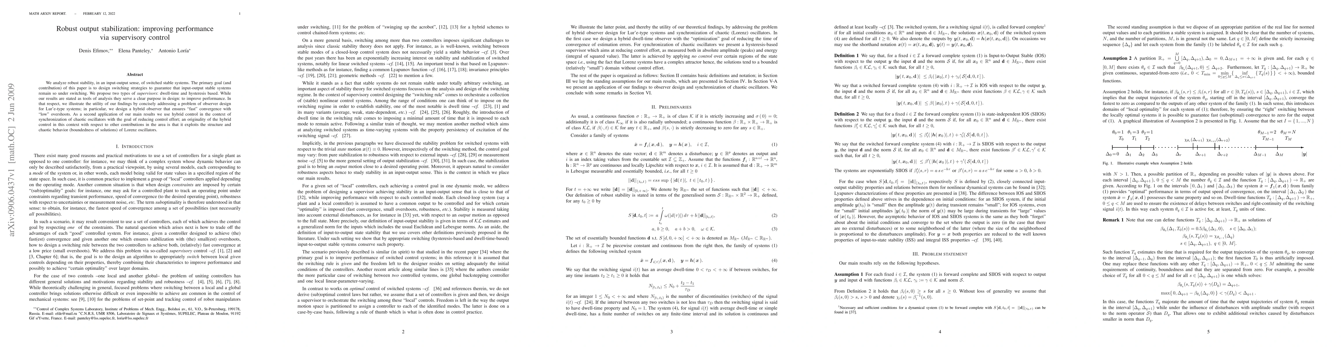 This paper proposes switching strategies to maintain robust stability in switched stable systems, introducing dwell-time and hysteresis-based supervisors to enhance performance. It demonstrates applications in hybrid observer design for Lur'e-type systems and synchronization of chaotic oscillators, leveraging the chaotic behavior of Lorenz oscillators.