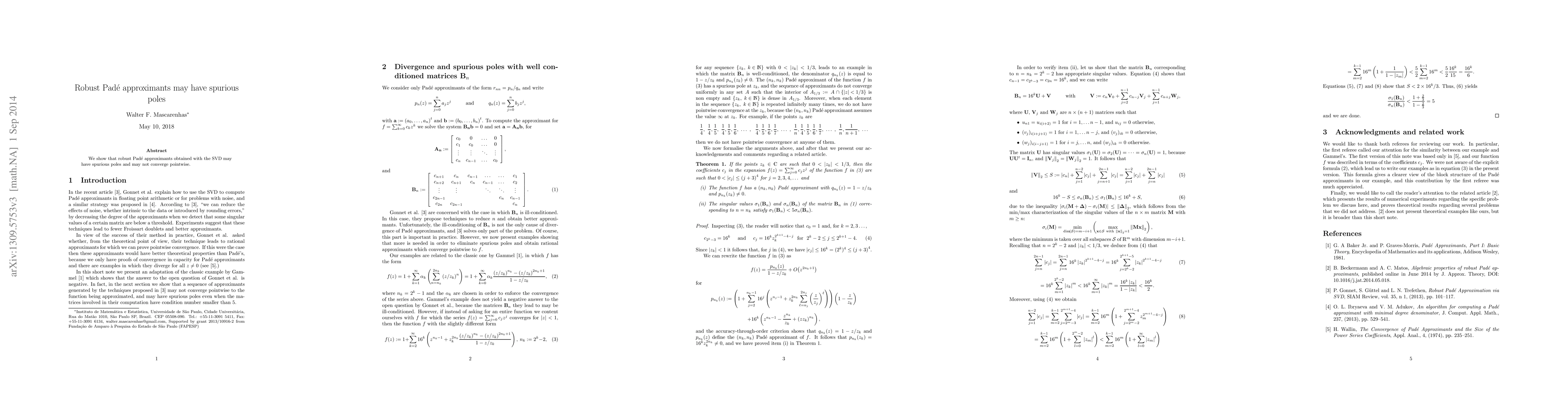 Summary: This paper demonstrates that robust Pade approximants can possess spurious poles and fail to converge pointwise, challenging their reliability in approximation tasks.