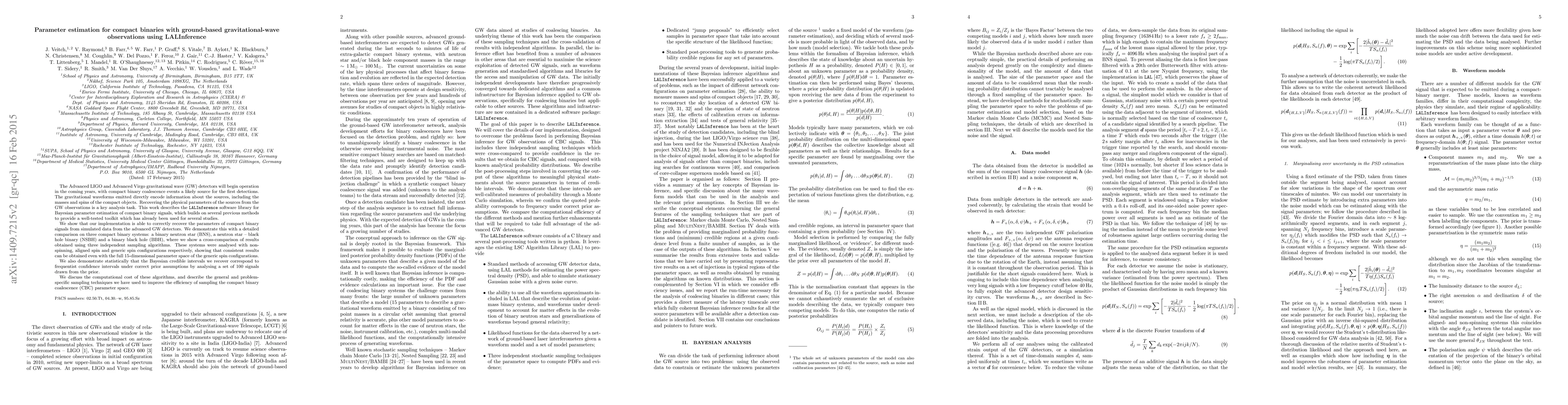This paper introduces the LALInference software library for Bayesian parameter estimation of compact binary signals detected by gravitational wave observatories. It demonstrates the library's effectiveness in recovering parameters for various compact binary systems, including binary neutron stars, neutron star-black hole binaries, and binary black holes, showing consistent results across different spin configurations and computational efficiency.