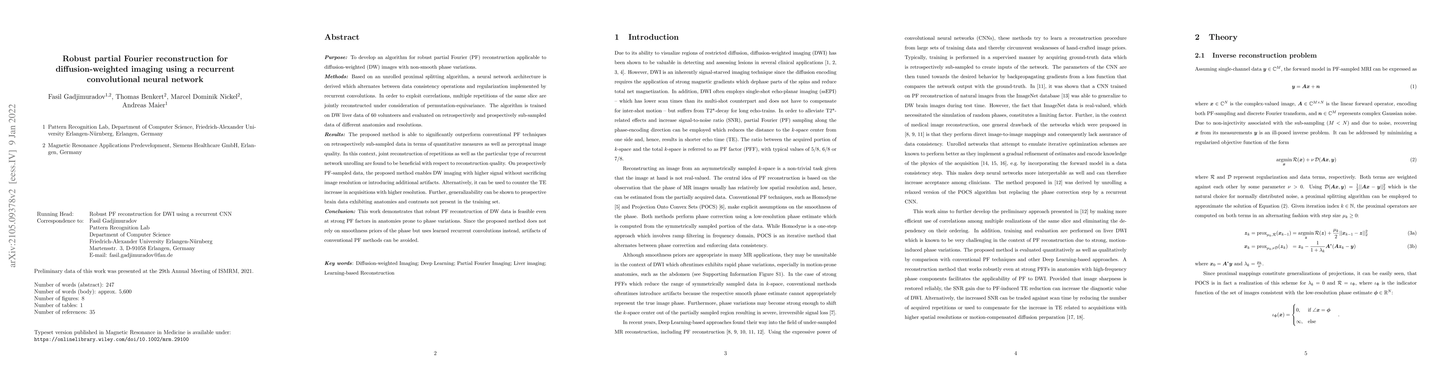 The paper presents a novel recurrent convolutional neural network architecture for robust partial Fourier reconstruction of diffusion-weighted MRI data, which outperforms conventional techniques in terms of image quality and signal-to-noise ratio.