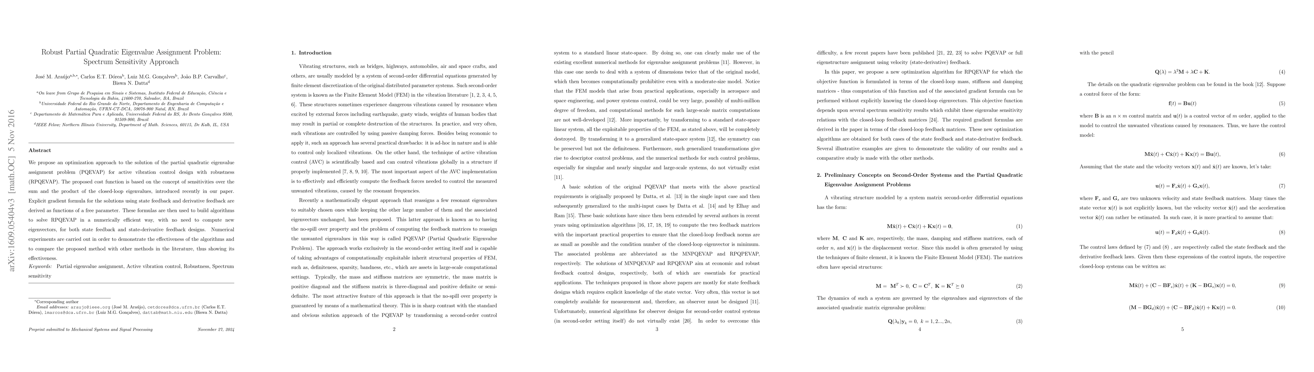 Researchers propose a novel optimization approach to robustly assign quadratic eigenvalues for active vibration control design, reducing computation requirements and improving efficiency.