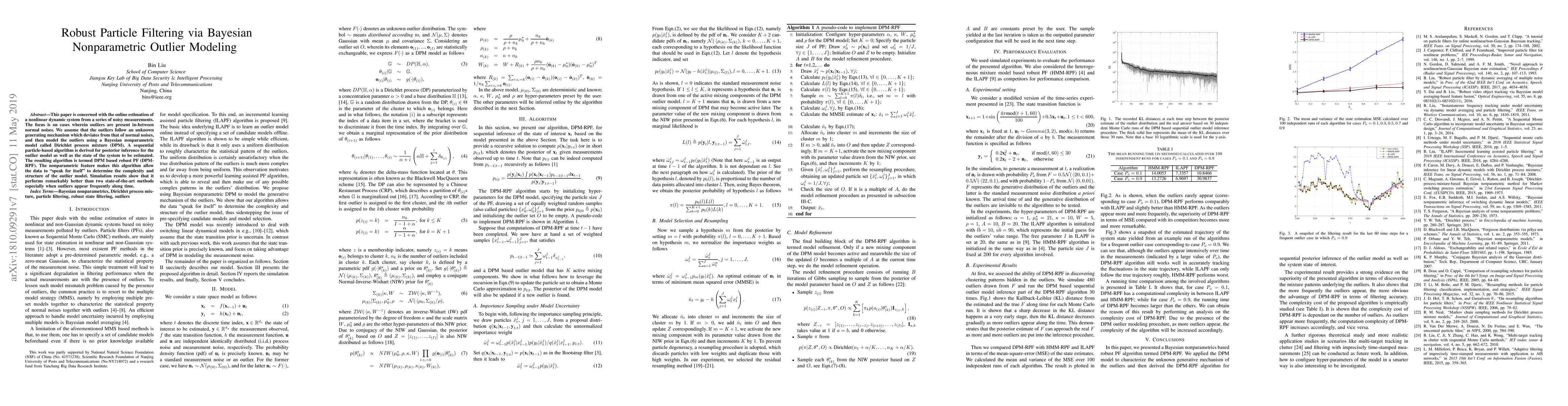 This paper introduces DPM-RPF, a robust particle filtering algorithm that uses Bayesian nonparametric outlier modeling to estimate nonlinear dynamic systems with outliers, outperforming two state-of-the-art methods in simulations.