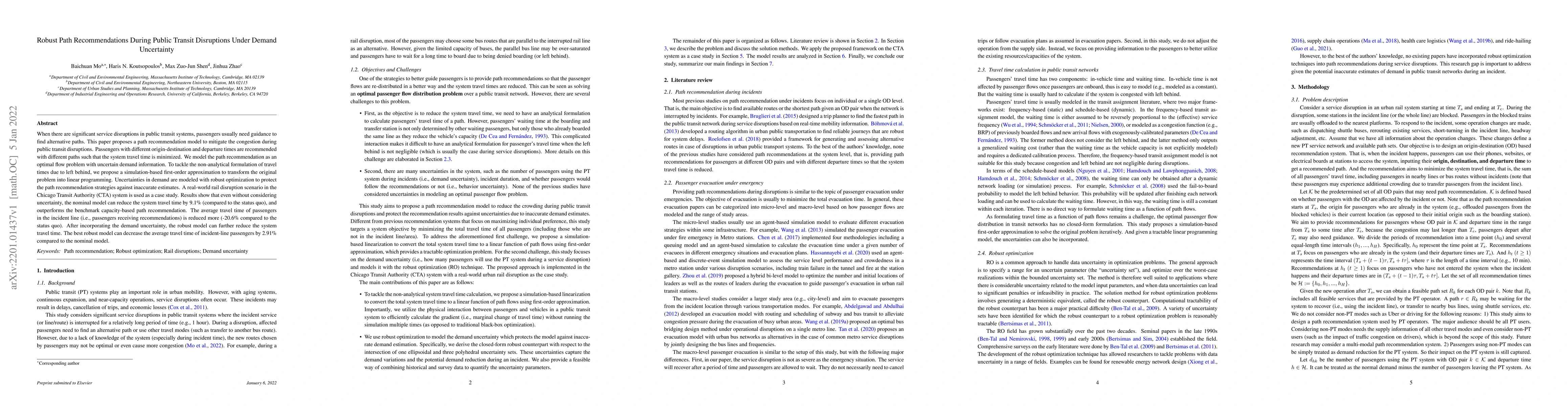 Zuo-Jun Max Shen, Jinhua Zhao, Haris N. Koutsopoulos et al.