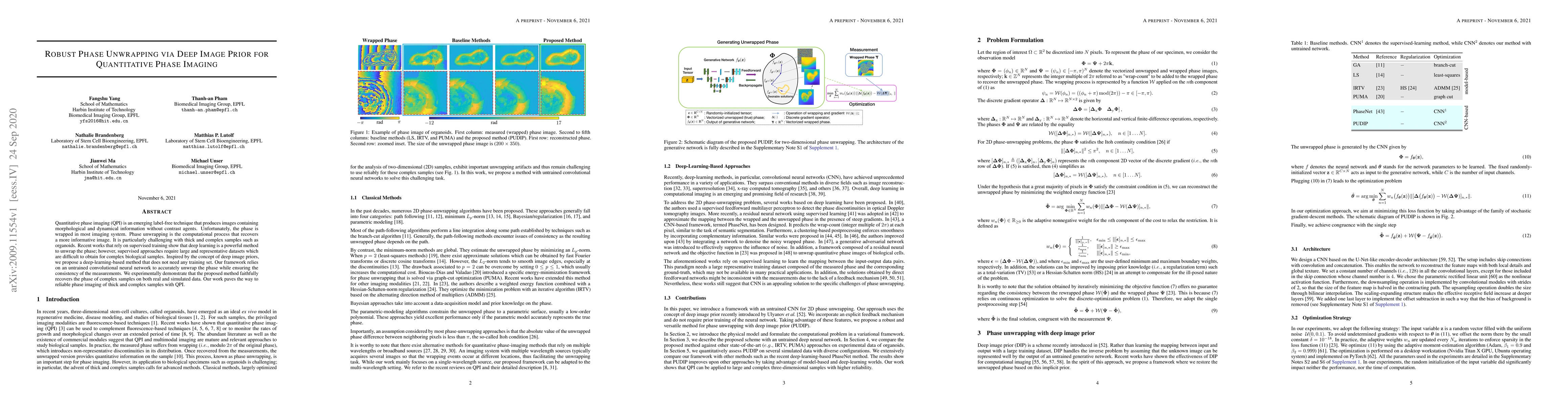 This paper proposes a deep-learning-based phase unwrapping method using deep image priors for quantitative phase imaging (QPI), eliminating the need for large training datasets. The method effectively recovers the phase of complex samples without requiring supervised training, demonstrating reliable results on both real and simulated data.