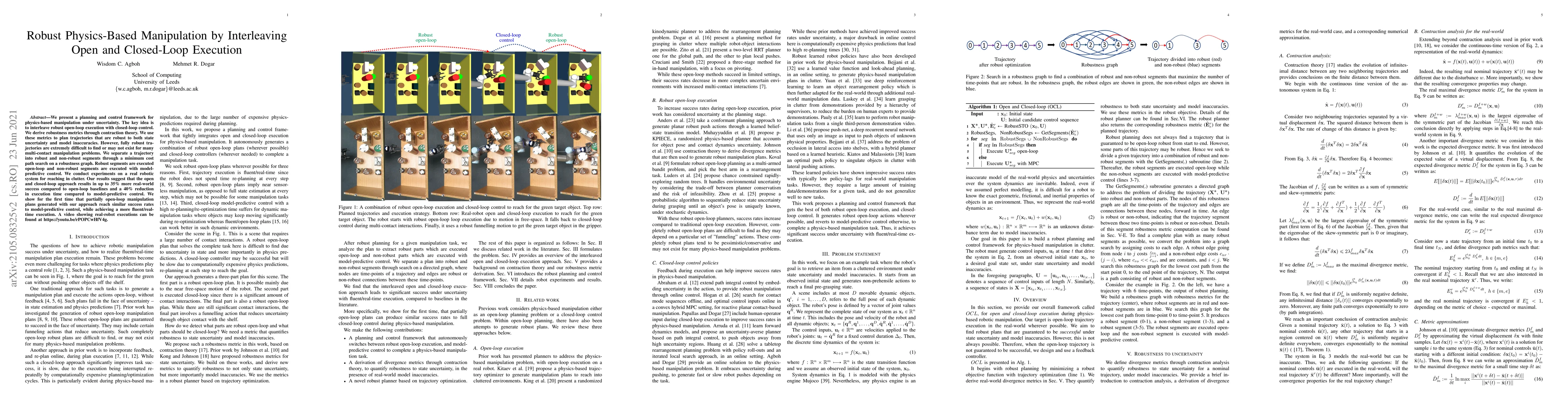 We present a planning and control framework for physics-based manipulation under uncertainty. The key idea is to interleave robust open-loop execution with closed-loop control. We derive robustness metrics through contraction theory. We use these metrics to plan trajectories that are robust to both state uncertainty and model inaccuracies. However, fully robust trajectories are extremely difficult to find or may not exist for many multi-contact manipulation problems. We separate a trajectory into robust and non-robust segments through a minimum cost path search on a robustness graph. Robust segments are executed open-loop and non-robust segments are executed with model-predictive control. We conduct experiments on a real robotic system for reaching in clutter. Our results suggest that the open and closed-loop approach results in up to 35% more real-world success compared to open-loop baselines and a 40% reduction in execution time compared to model-predictive control. We show for the first time that partially open-loop manipulation plans generated with our approach reach similar success rates to model-predictive control, while achieving a more fluent/real-time execution. A video showing real-robot executions can be found at https://youtu.be/rPOPCwHfV4g.